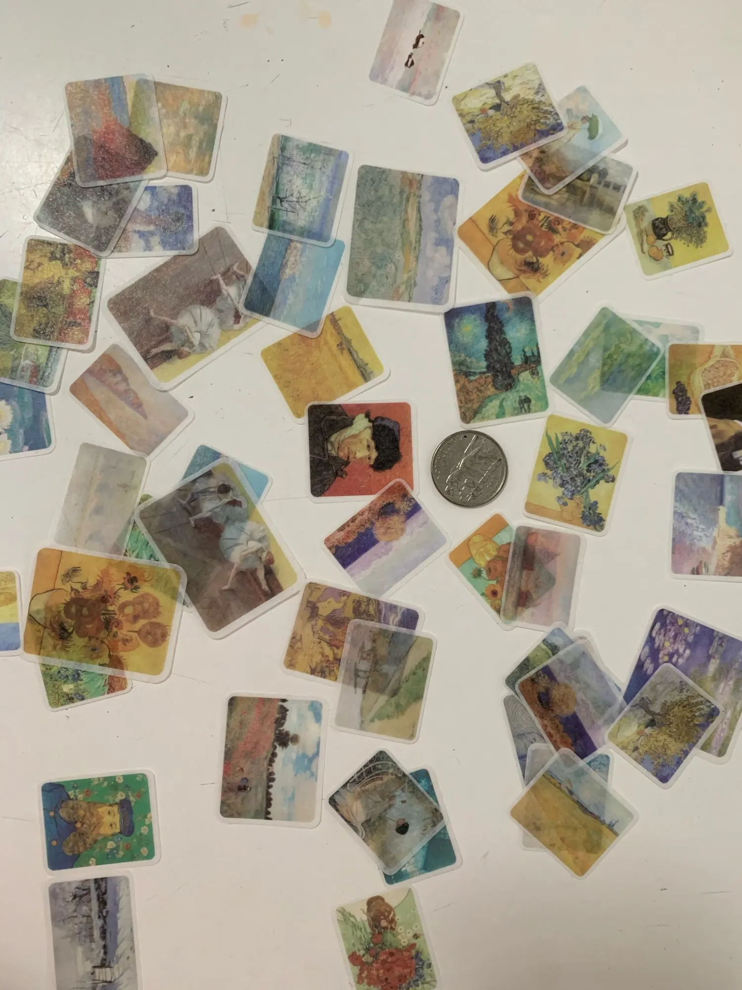 Наклейки интересные. Изображение не яркое. Некоторые из них были склеены друг с другом, очень жаль... Количество совпадает, но из-за брака некоторые придется выбросить.