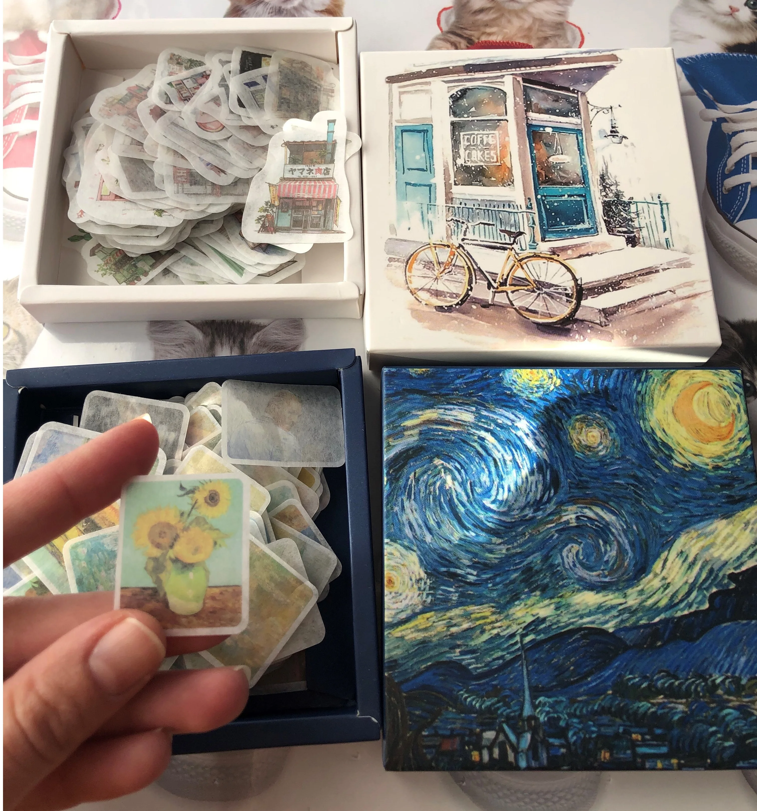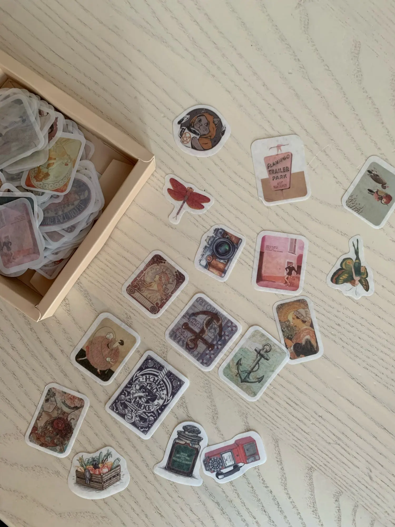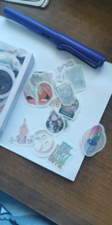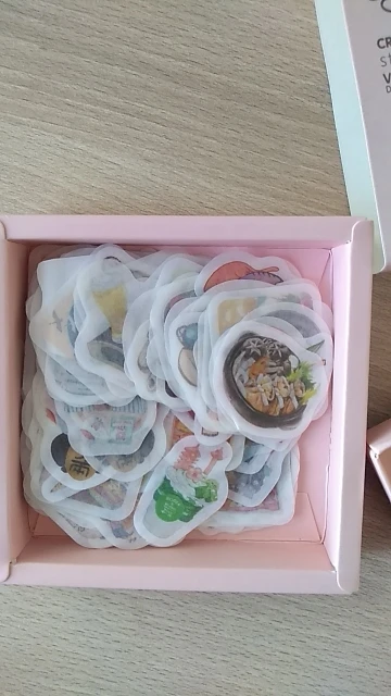 Наклейки очень милые, и они довольно красивые, из-за типа бумаги они выглядят немного непрозрачно, но не влияет на продукт так сильно
