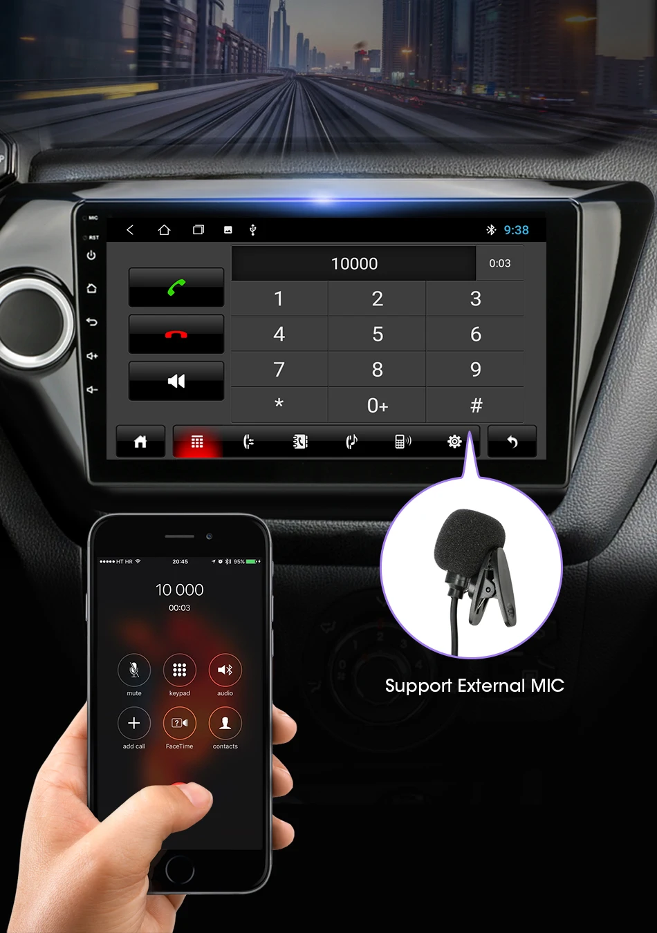 Поддержка Bluetooth, циферблат телефона Bluetooth, встроенный микрофон радио, даже если окружающая среда шумит, Радио поддерживает подключение внешнего микрофона, что гарантирует качество вашего звонка.