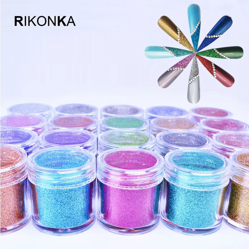 1 коробка голографический Блестящий пигмент порошок лазерный лак для ногтей Блестящий сахарный Пыльник Серебристые Блестящие Блестки хромированный набор украшений для дизайна ногтей