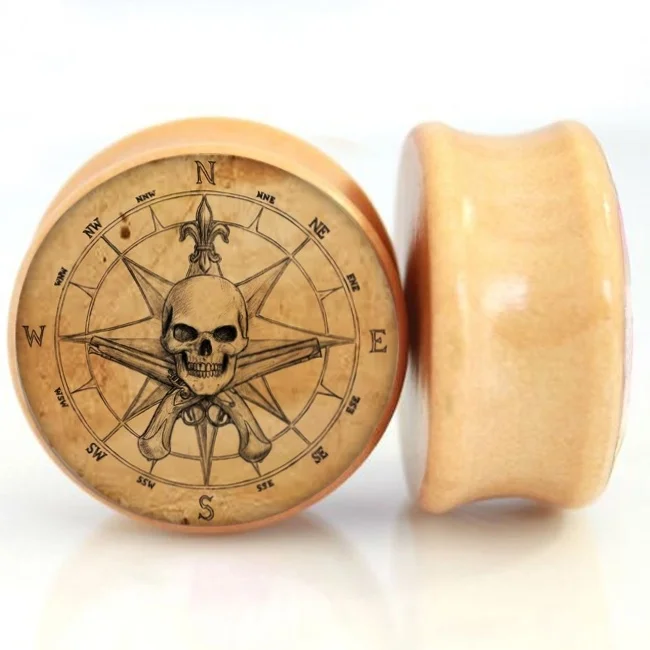 2 шт.лот деревянные заглушки и туннели для ушей с измерителем черепа и компасом 8 мм-25 мм растягиватель ушей расширитель седельная заглушка пирсинг ювелирные изделия