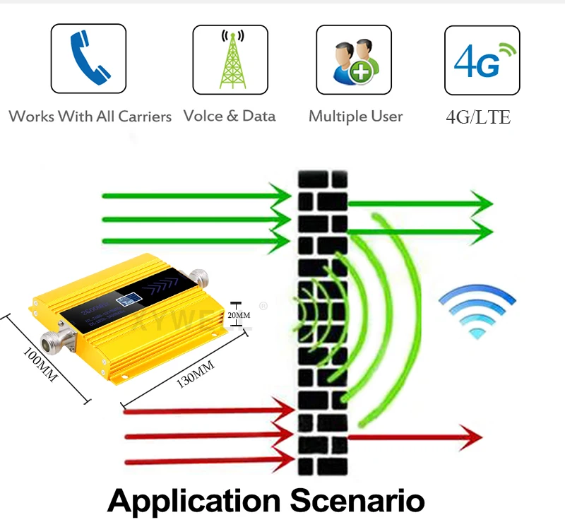 Perfect for 1 - 2 room or small offices: Say goodbye to dropped calls in your home. 1.Work for 4g. LTE 2600MHz signal booster repeater. 2.Frequency range:Uplink:2500~2570 MHz Downlink:2620 ~ 2690 MHz 3.With LCD Display , can indicate the signal status. 4.Coverage area: cover about 300sqm without barrier.1 antenna cover about 100-150sqm. 5.High linear design, ALC technology. 6.2600mhz (Band 7) lte signal repeater. Ideal for home used. 7.Improve Indoor mobile signal,no more dropping calls,no more bad network speed.