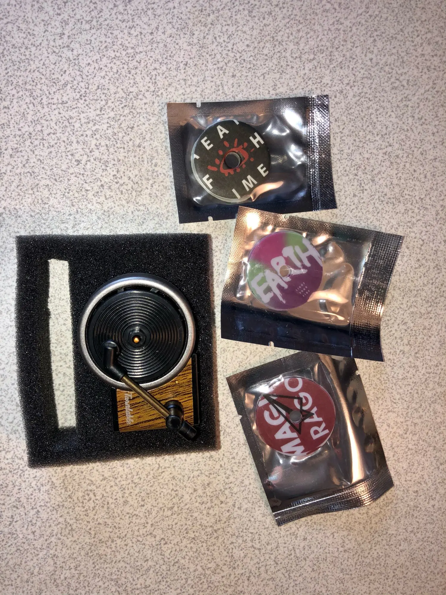 ВАУ, пришёл ароматизатор. Такой он КЛАССНЫЙ, СТИЛЬНЫЙ, ВИНТАЖНЫЙ!!! Даже если пластинки не будут пахнуть, всё равно он КЛЁВЫЙ :-))) Соответствует описанию и фото. Упаковано классно, можно и в подарок брать :-))) Трек отслеживался до адреса. Продавец хороший.