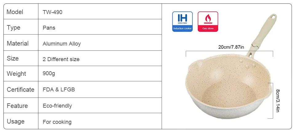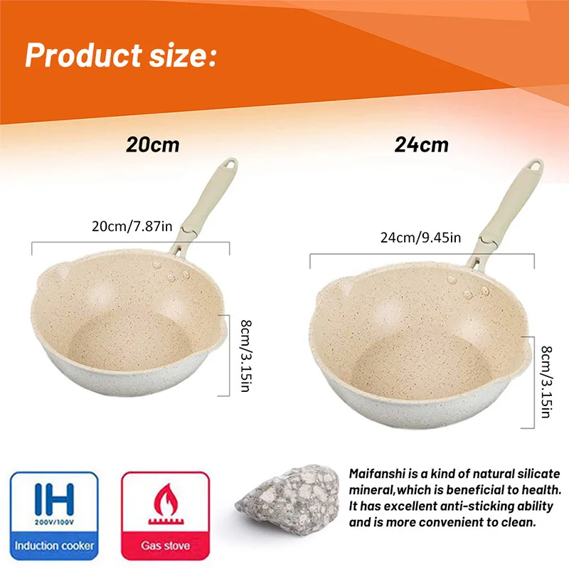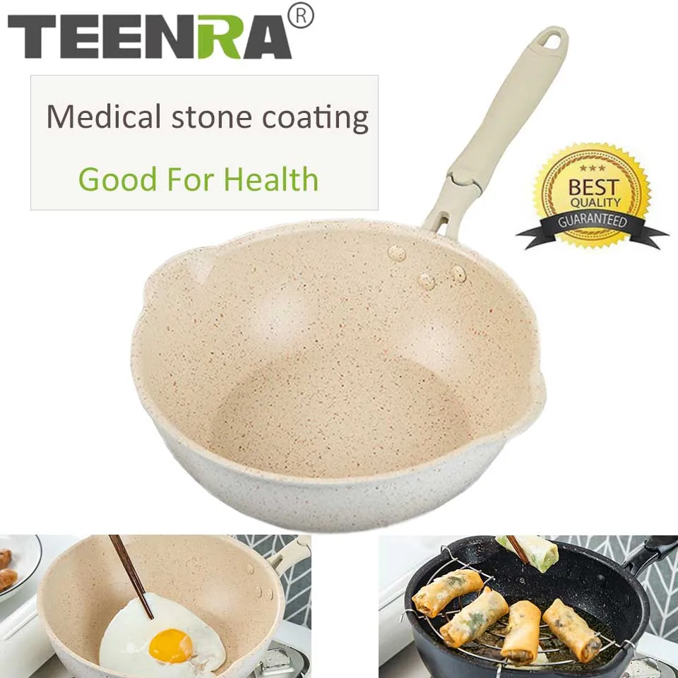 Кастрюля-Вок TEENRA, 20 см, из камня, с антипригарным покрытием, алюминиевая, японская, бытовая, кухонная, кастрюля для завтрака