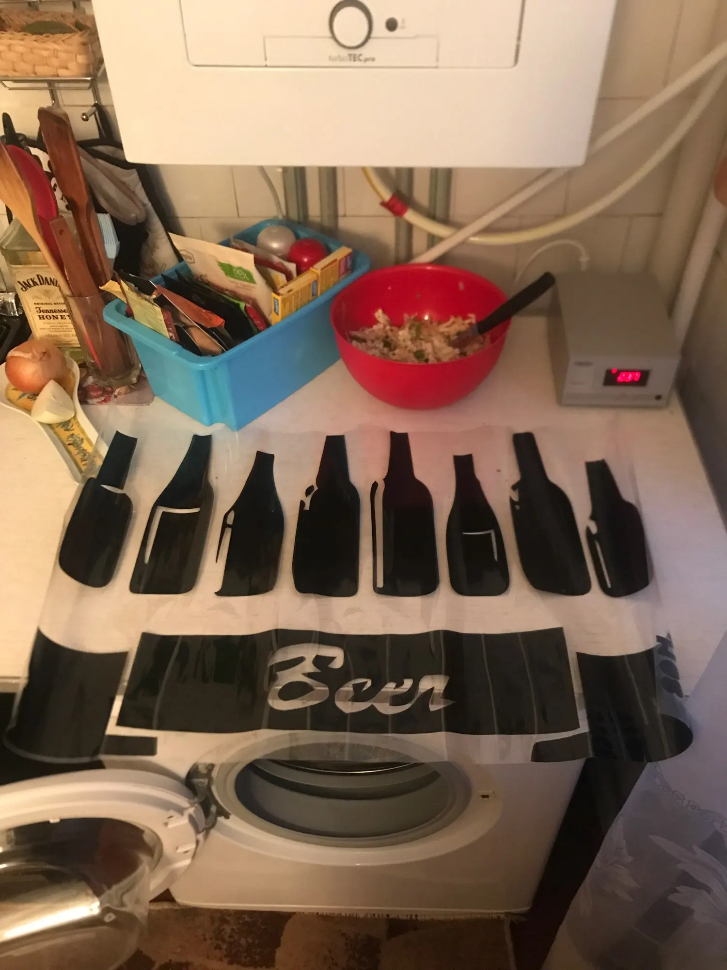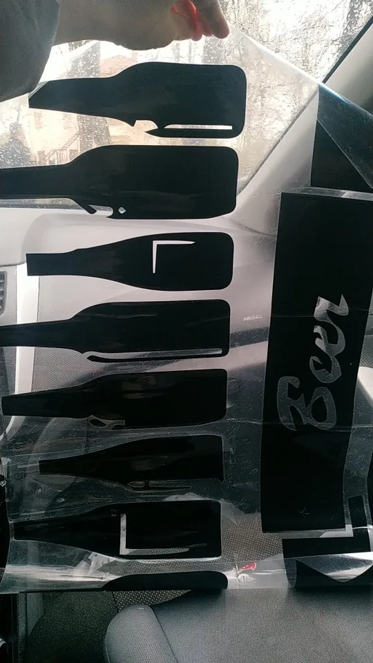 Недовольна, сделано не качественно, выглядят не аккуратно, бутылки обрезаны кое-как. Заказать в полиграфии или купить клеющуюся чёрную бумагу и самой вырезать бутылки выйдет дешевле. Доставка очень быстрая, только за это ставлю 2 звезды
