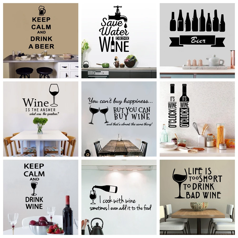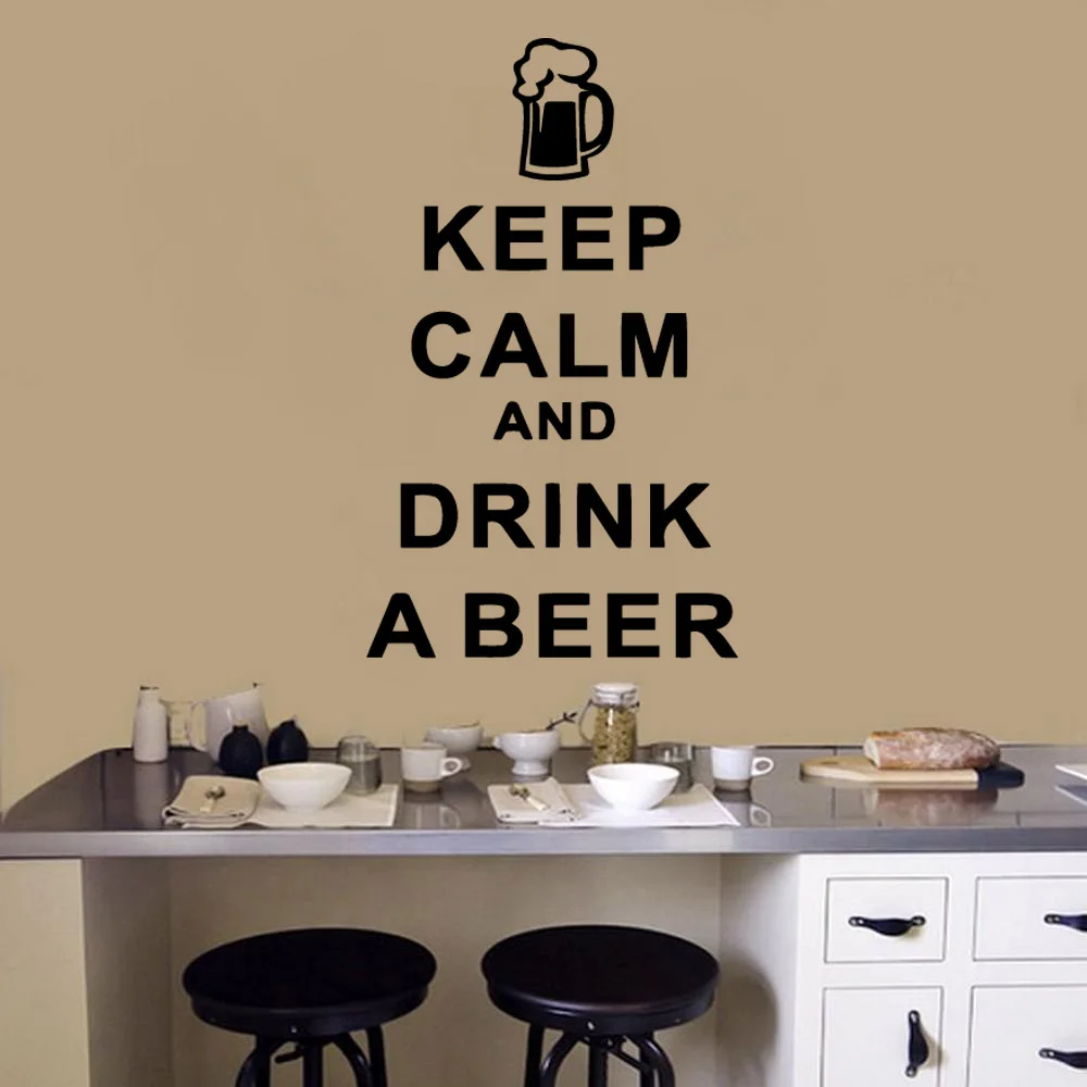 Классический предложении питья пива вина и надписью Keep Calm цитатами, Съемные Виниловые наклейки на стену для Кухня Гостиная фоновая Настенная Наклейка