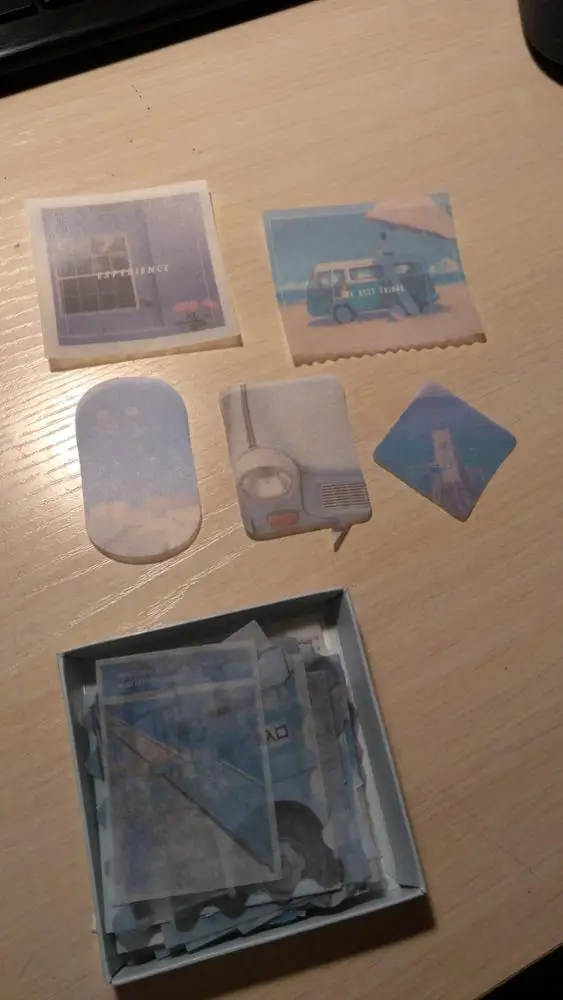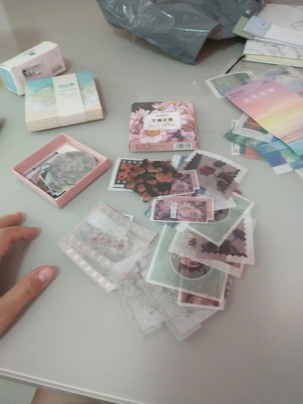 Наклейки хорошие, поулпрозрачные. На ощупь приятные, не гладкие и глянцевые, как стандартные наклейки. Коробка немного помялась, но наклейки в порядке! За такую цену столько красивых наклеек - просто чудесно.