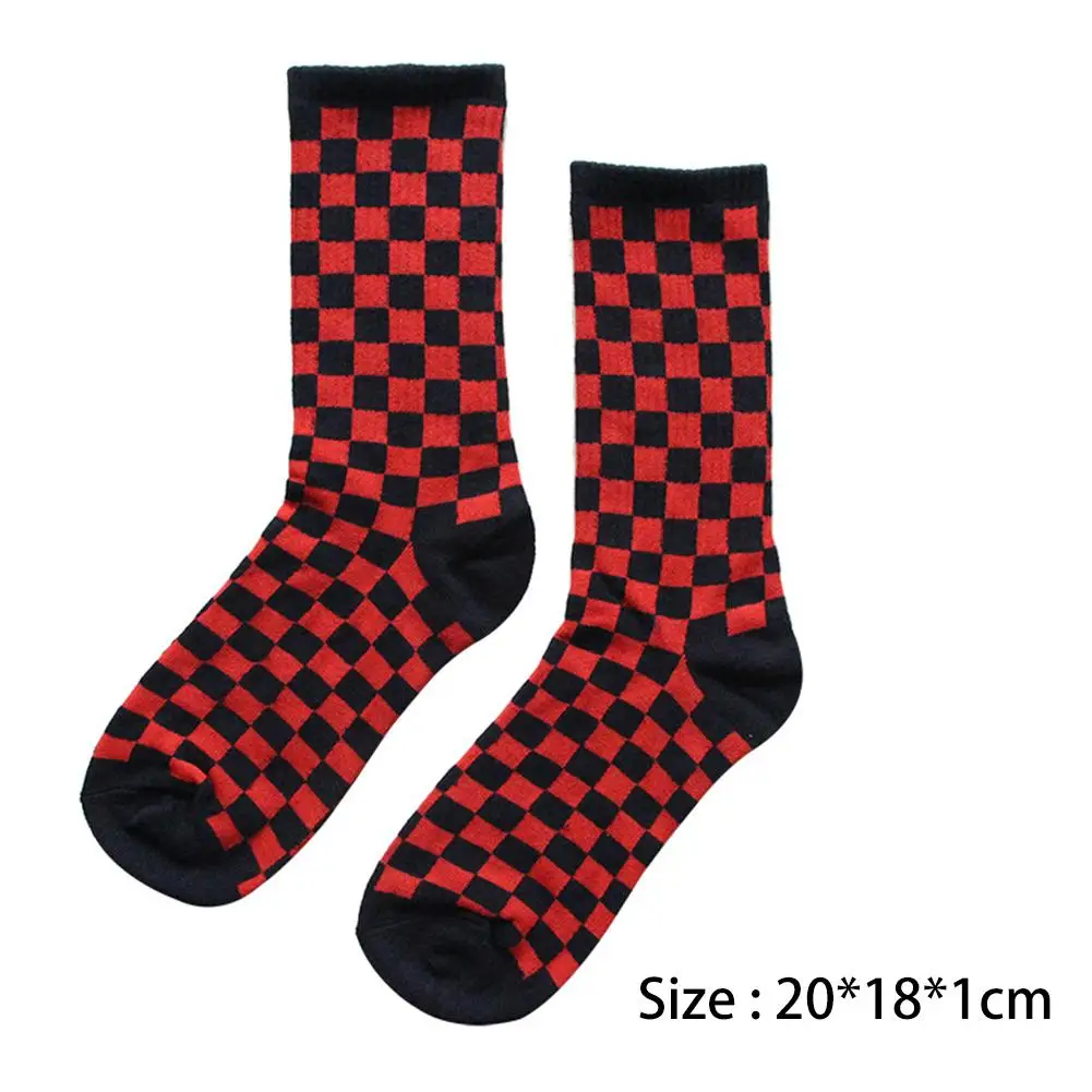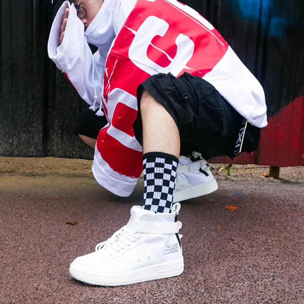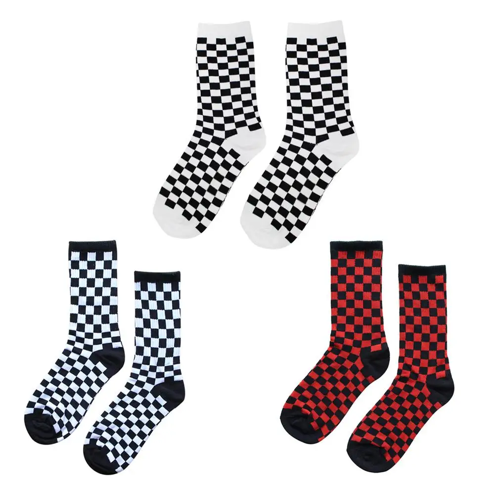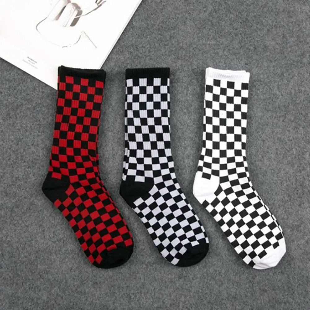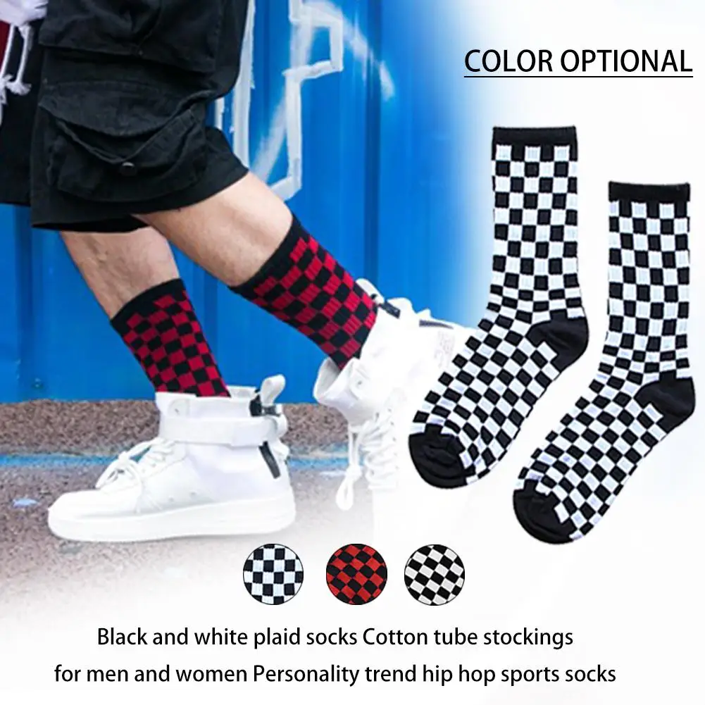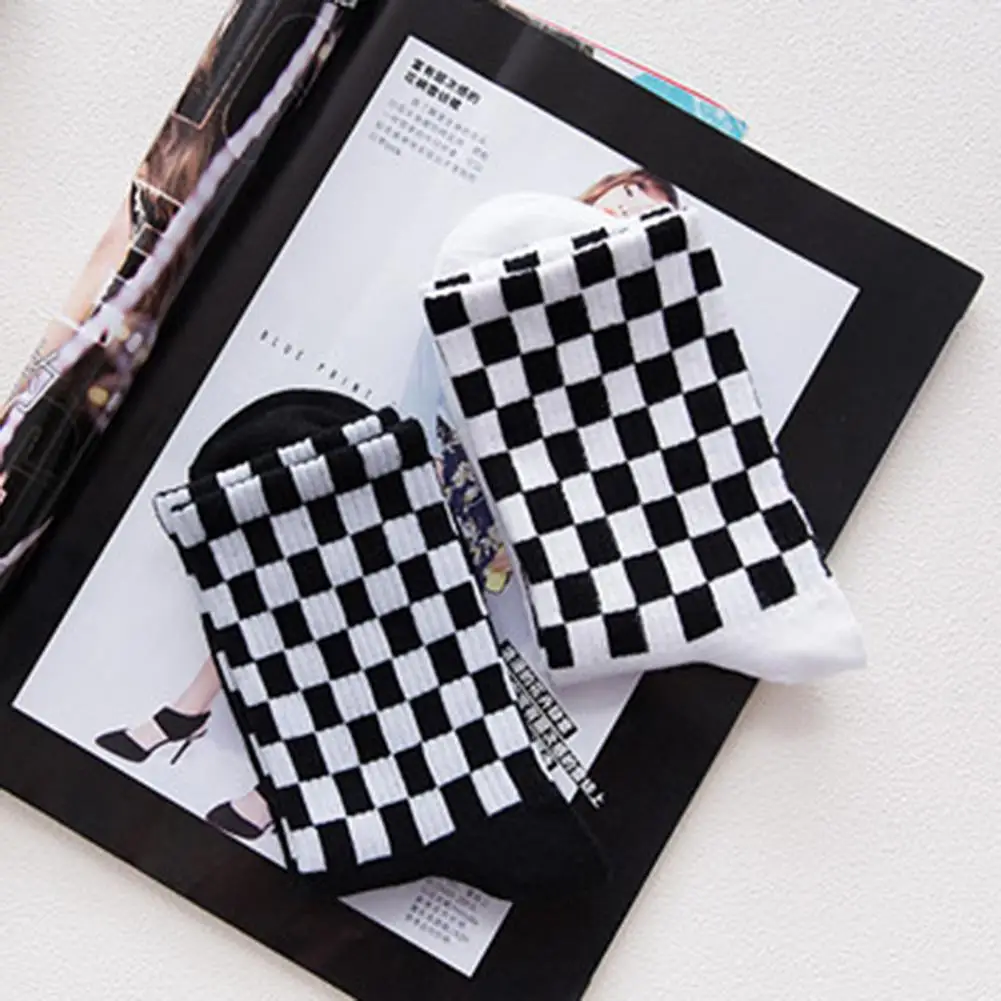 Носки в стиле Харадзюку, хлопковые, черно-белые, в клетку, в стиле хип-хоп