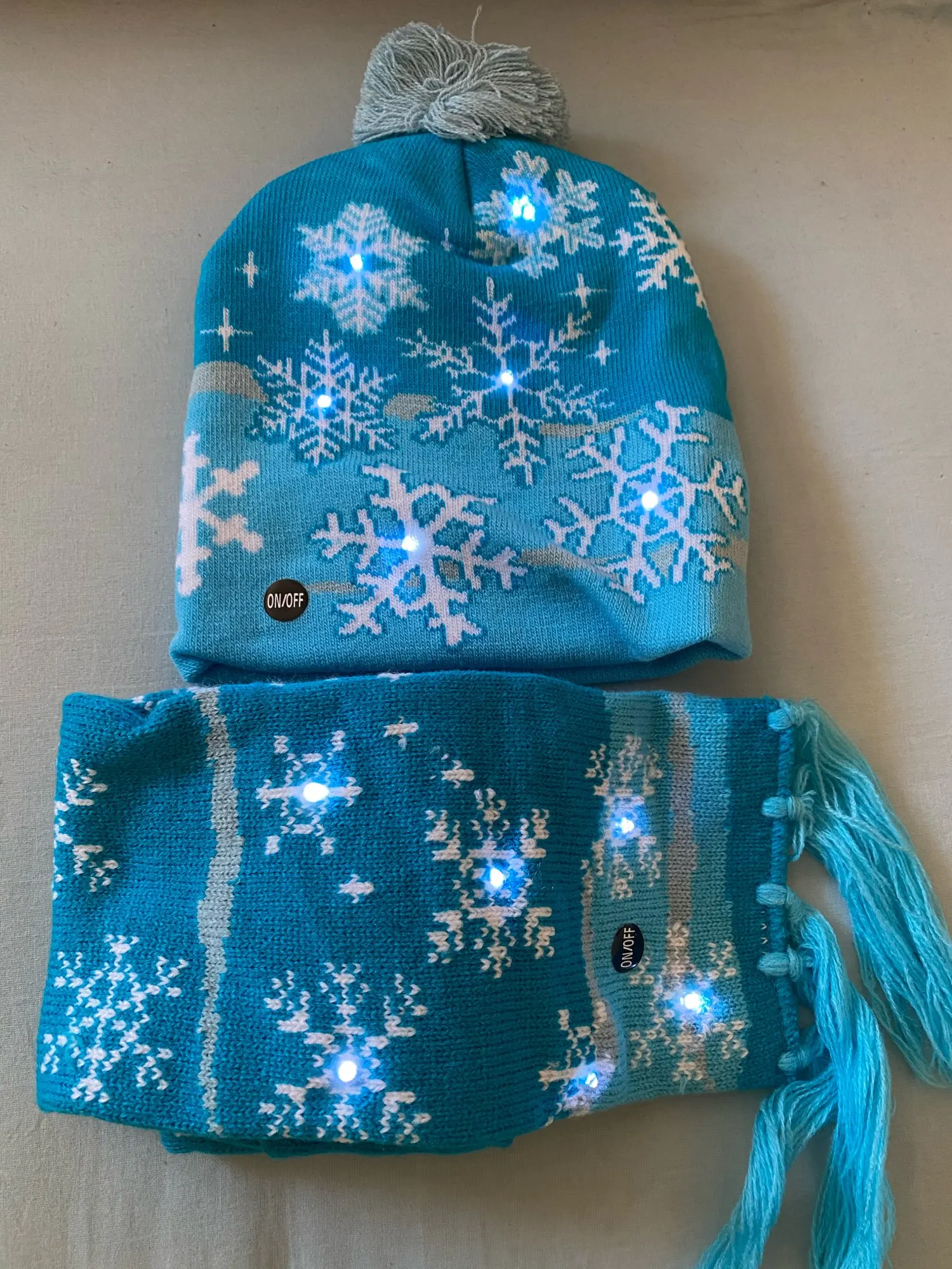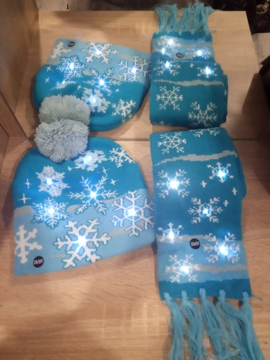 Единственный минус этого набора, когда сядет батарейка прийдется распаривать внутри, нет кармана как в других моделях. шапка двойная, на теплую погоду. А так все супер, светится в трёх режимах и шарфик. тоже)))