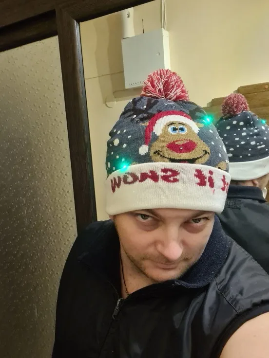 шапулька классная,правда доставка была долгая,трек не отслеживался,пришла уже далеко после нового года, на ребенка 4х лет оказалась очень большая,поэтому решили оставить на следующий год. лампочки все работают,выглядит красиво и необычно,нам понравилась,описанию соответствует