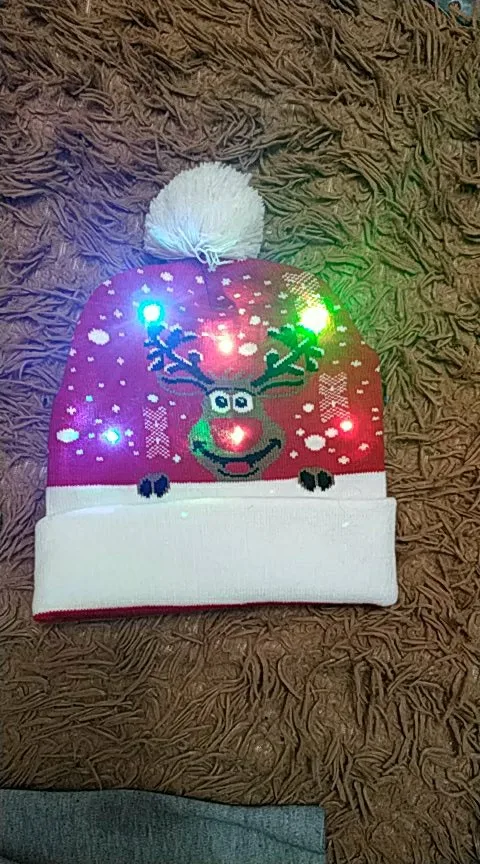 Отличная шапка, огоньки горят, качество хорошее, аккуратная вязка, яркий рисунок