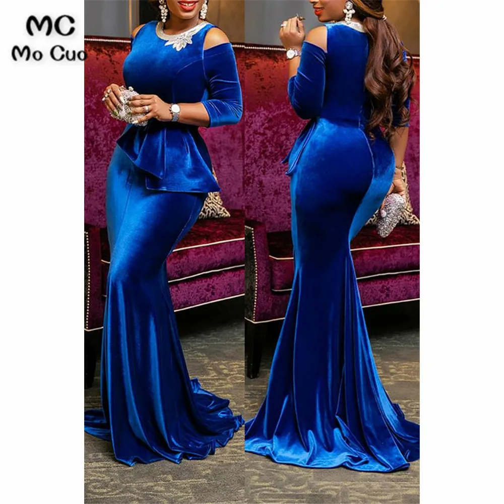 Женское вечернее платье-Русалка Royer, синее бархатное платье для выпускного вечера с рукавами 34 и бисером