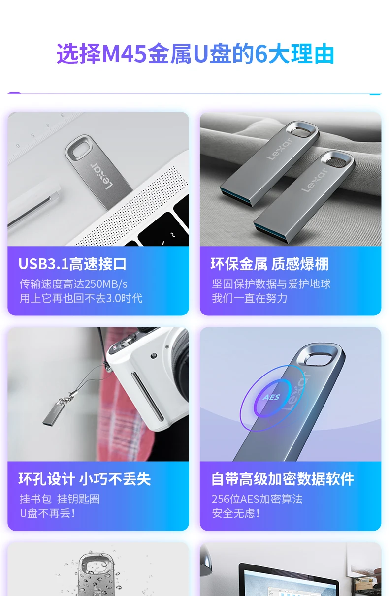 USB-флеш-накопитель Lexar M45, металлическая флешка, 32 ГБ, 64 ГБ, USB 3,0, высокоскоростная карта памяти 128 ГБ, 100 МБс., устройство хранения