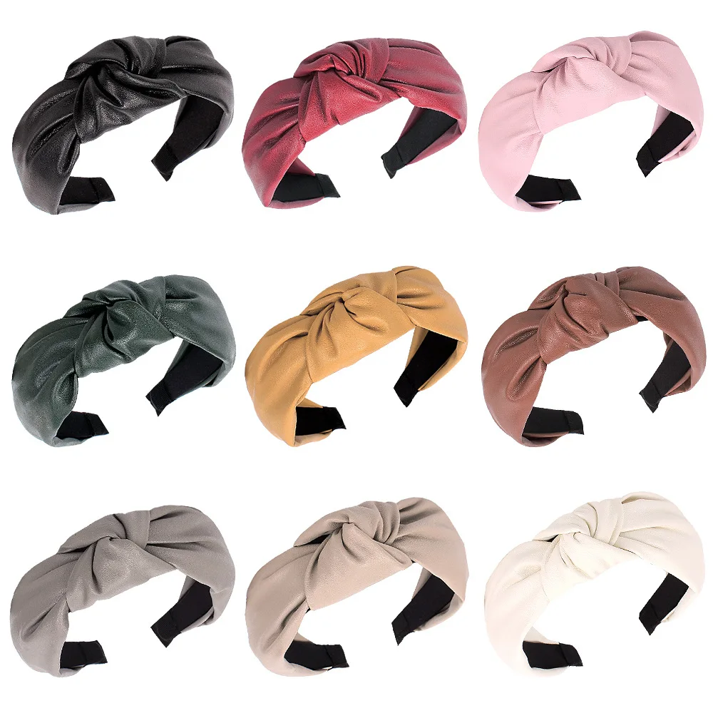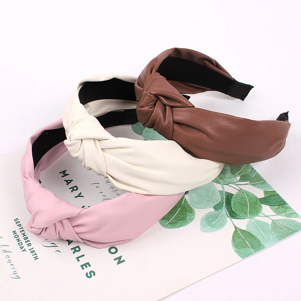 Модный ободок для волос из искусственной кожи, ободок с узлом, Женский ободок для волос, аксессуары для девочек, ободок для волос