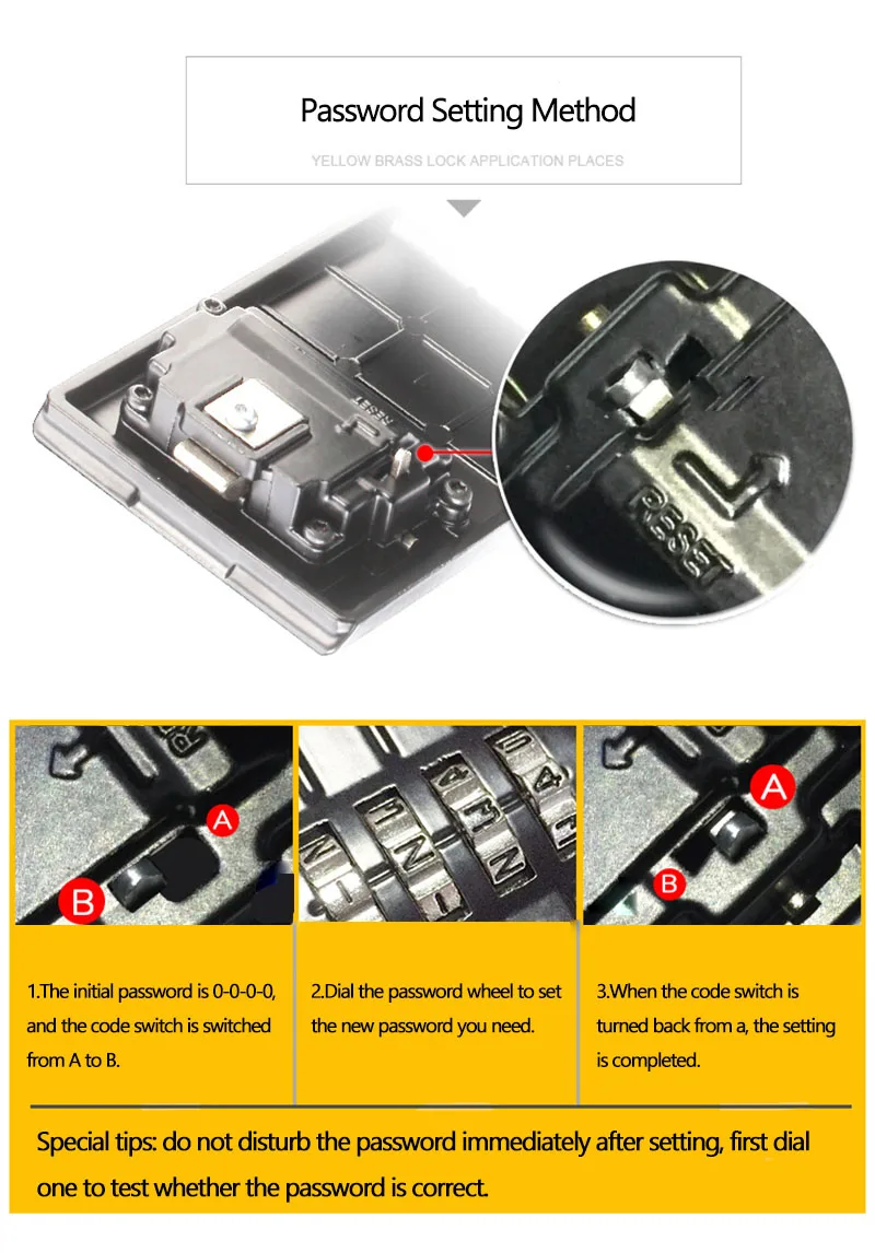 1. Исходный пароль 0-0-0-0, и переключатель кода переключается с A на B