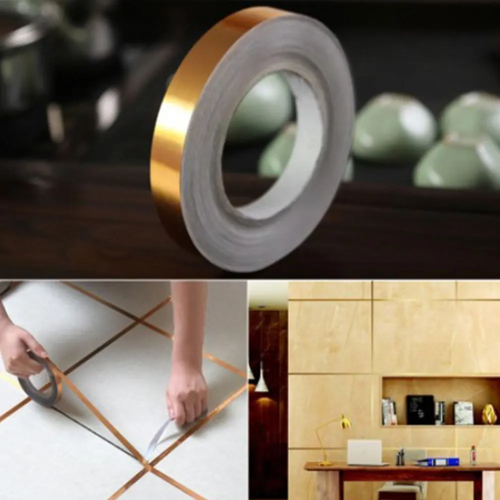 Золотая, серебряная самоклеящаяся домашняя Водонепроницаемая наклейка для пола, декор для ванной комнаты, водонепроницаемая, 0,5 см1 см