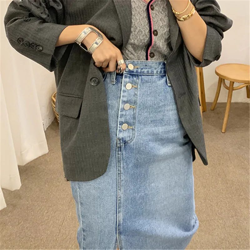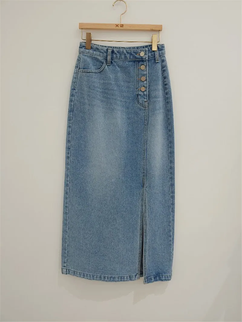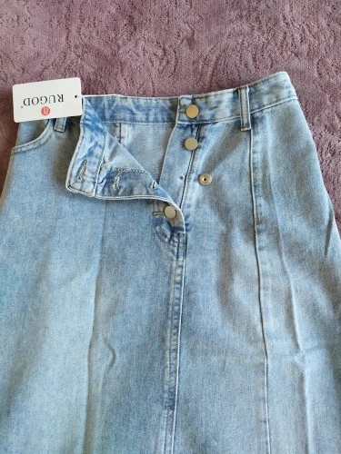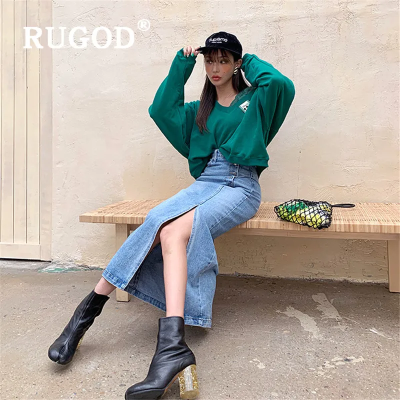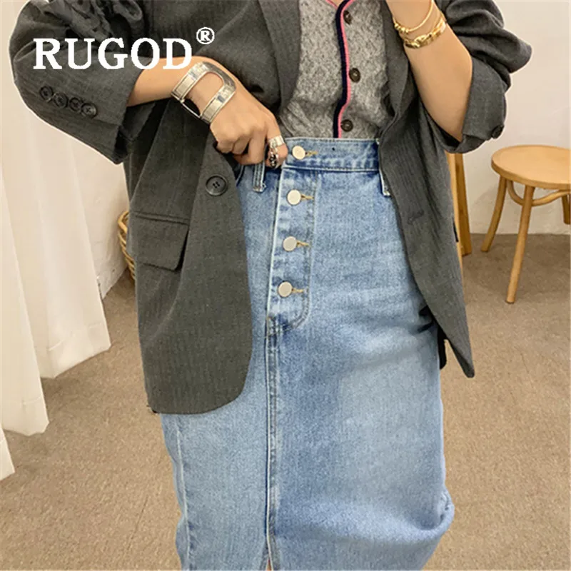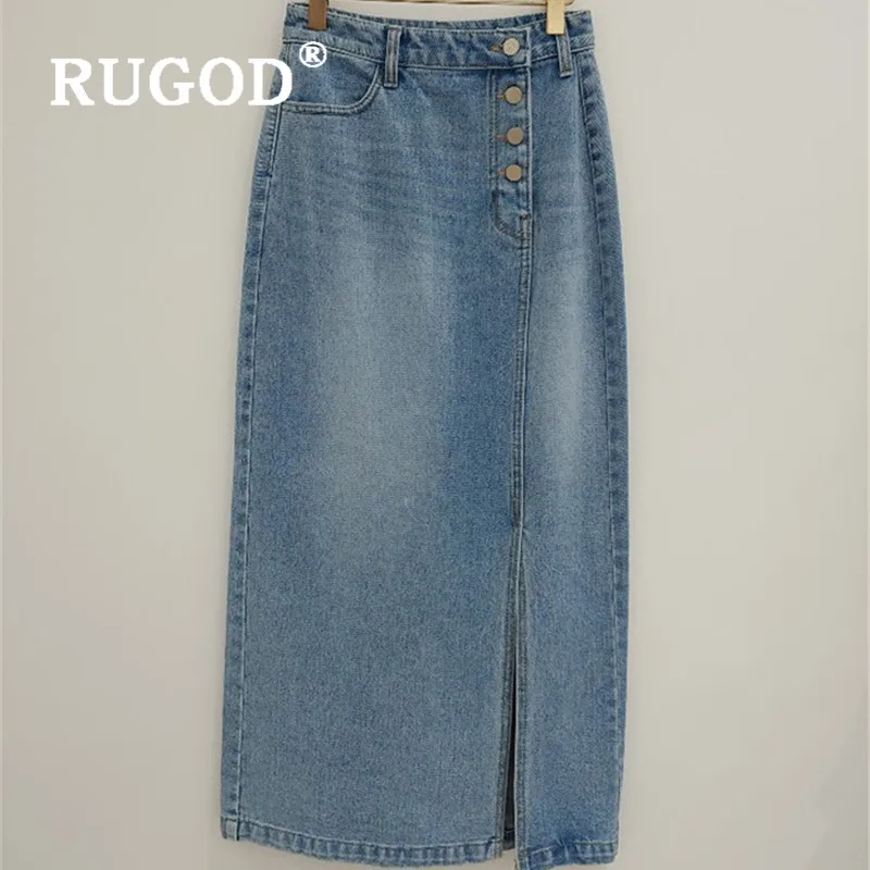 Женская джинсовая юбка RUGOD, прямая юбка с высокой талией, с четырьмя пуговицами сбоку, шикарная уличная одежда в Корейском стиле, 2021