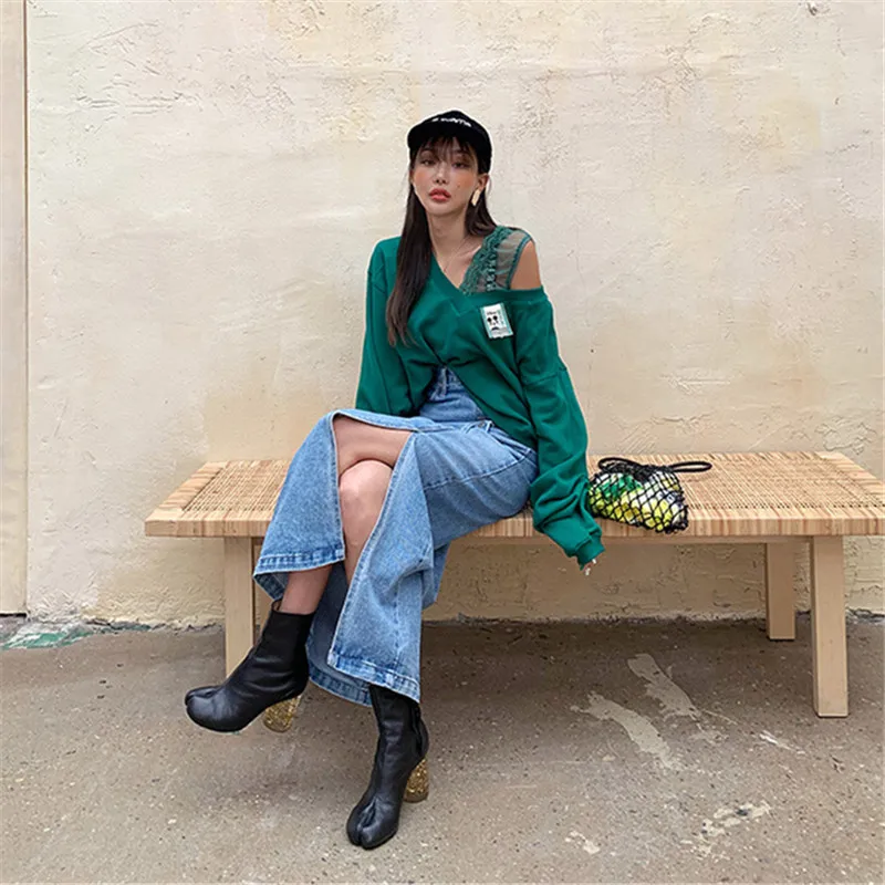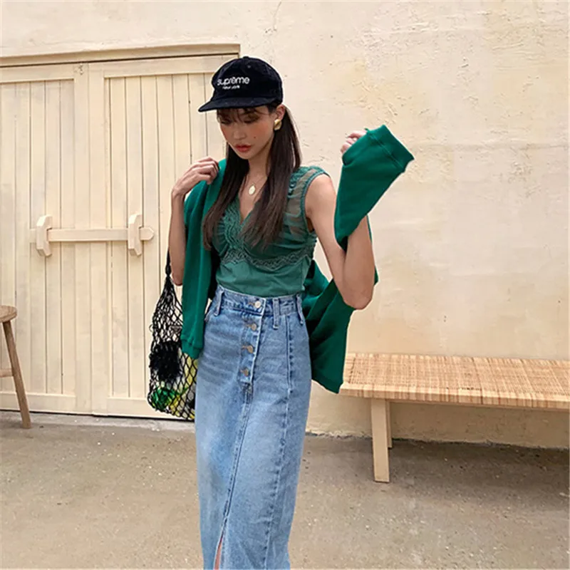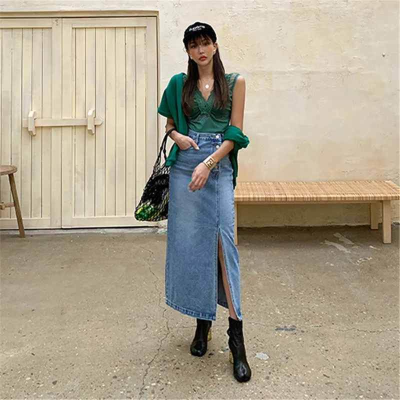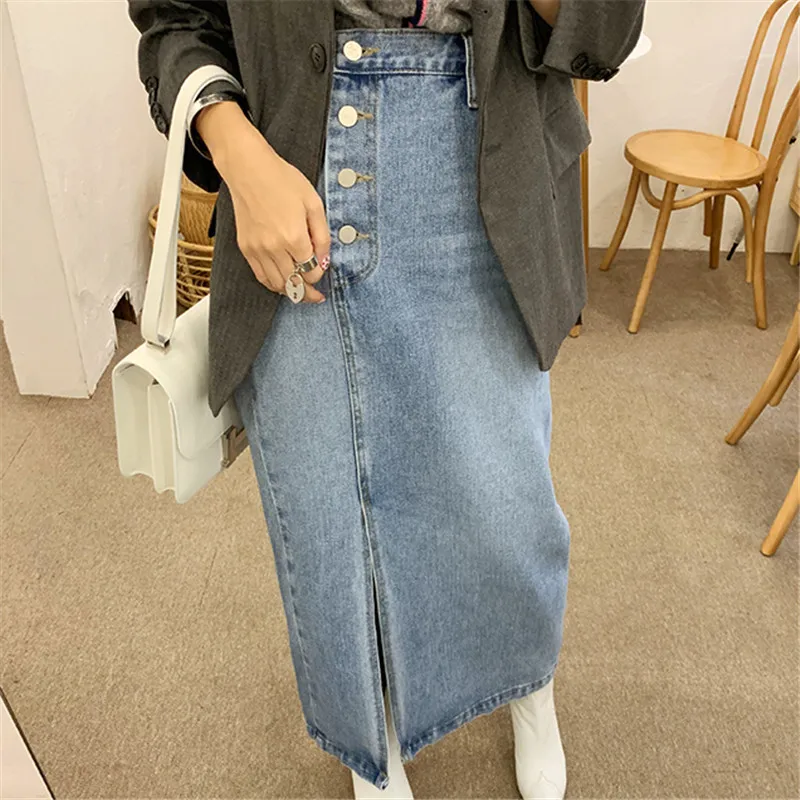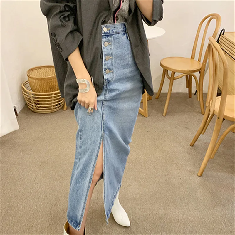 Женская джинсовая юбка RUGOD, прямая юбка с высокой талией, с четырьмя пуговицами сбоку, шикарная уличная одежда в Корейском стиле, 2021