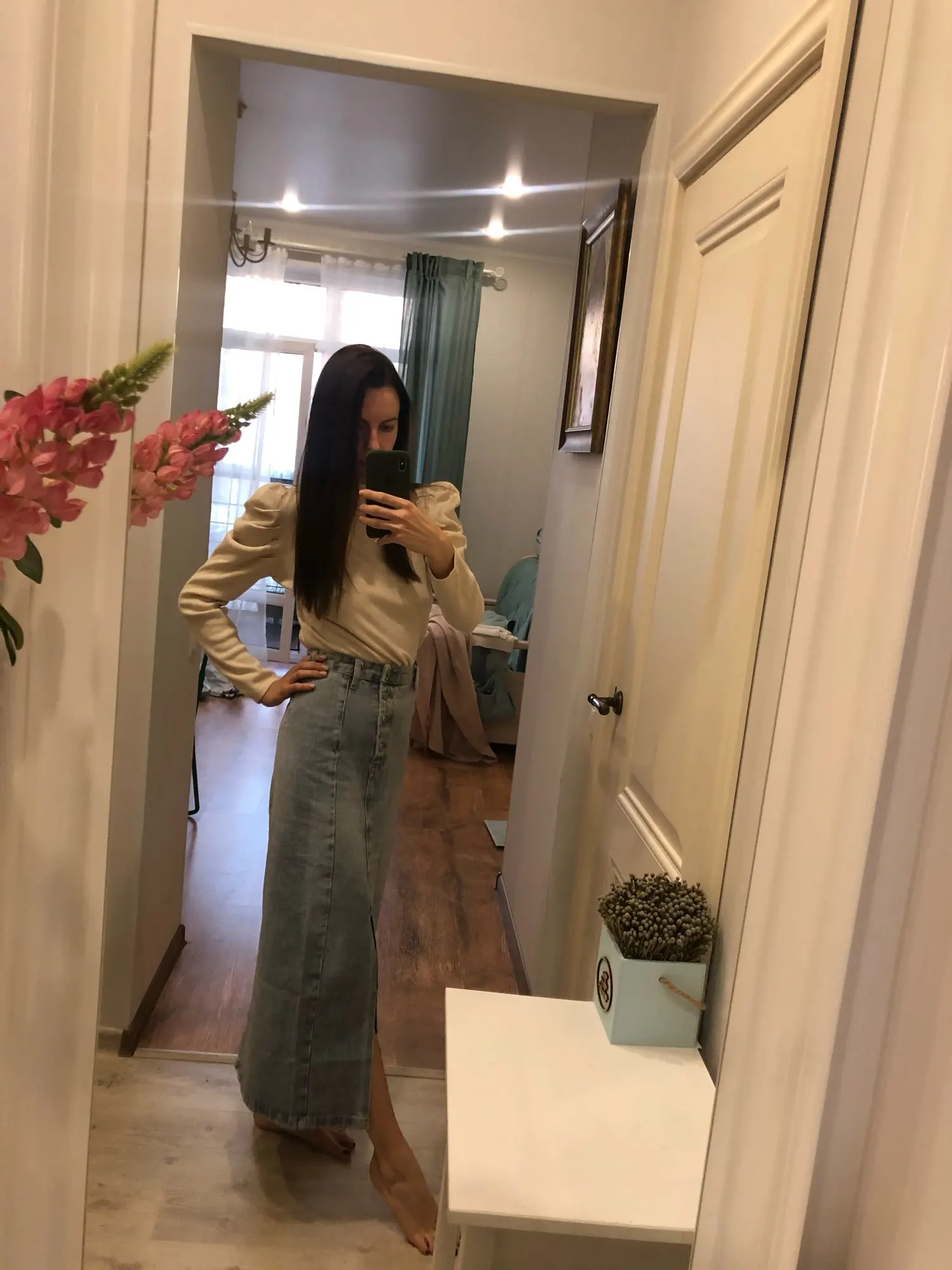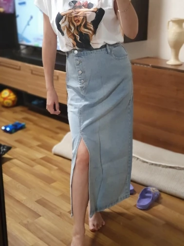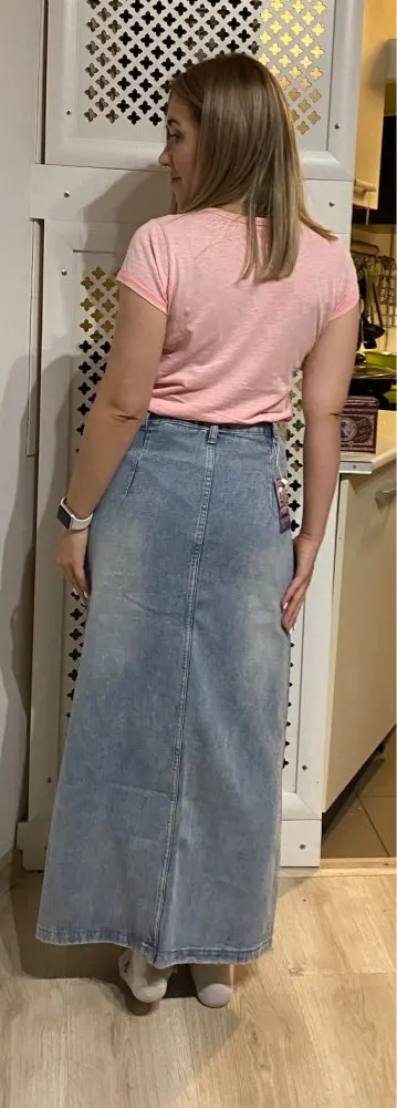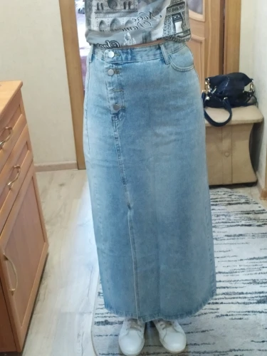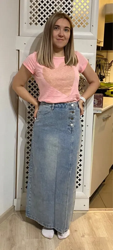 Юбка пришла через месяц. Красивая джинсовая ткань, тонкая ткань, хорошо сшита. Цвет не такой, как на фотографии продавца. Я заказал размер L в соответствии с размерами, которые дал продавец. Соответствует моим измерениям-талия 72, бедра 97. Мой рост 1,60, а длина юбки примерно в середине икр. У него сильный запах, но я думаю, что когда я мою юбку, она исчезнет. Я доволен покупкой
