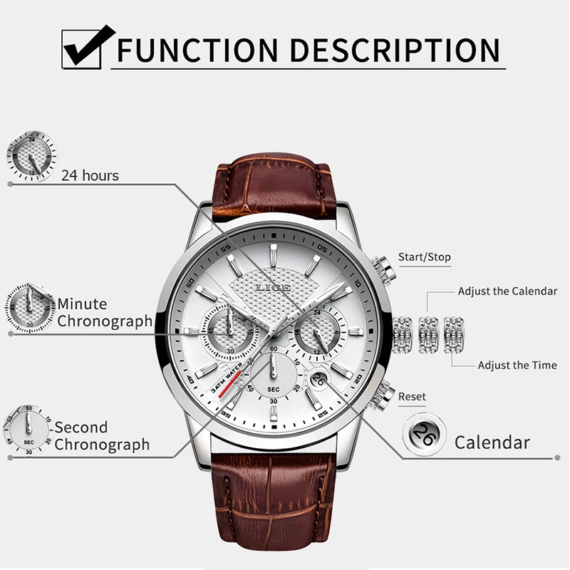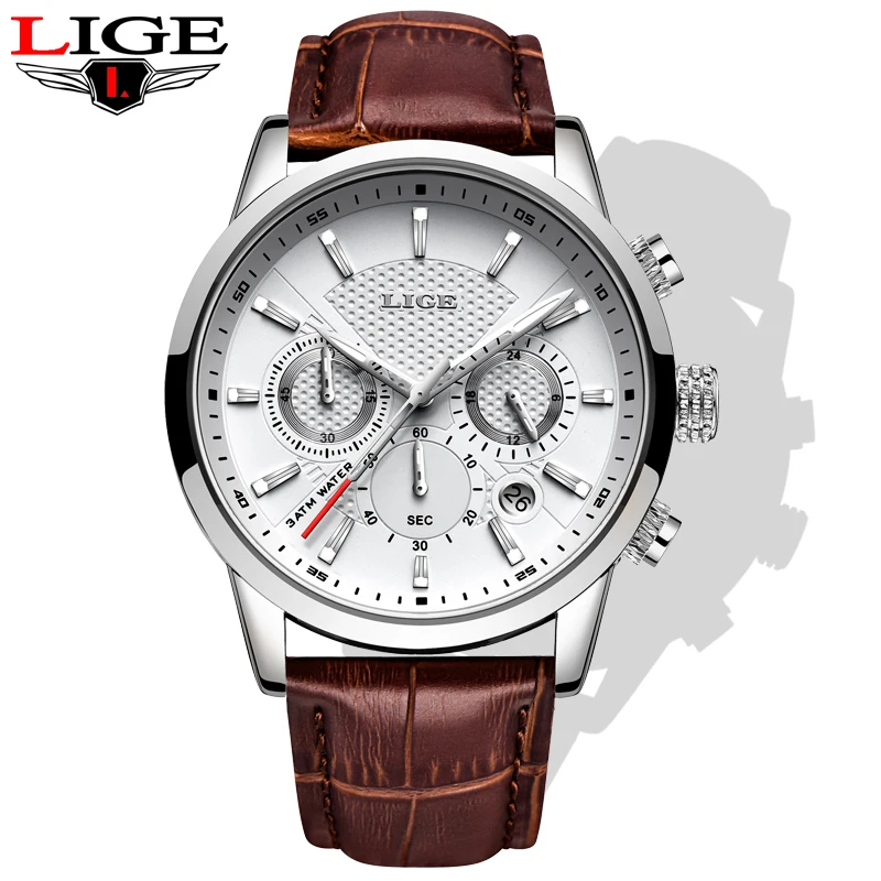 Часы наручные LIGE мужские с кожаным ремешком, роскошные брендовые ...