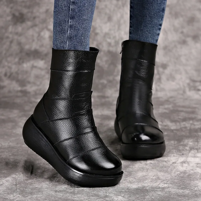 Женские ботинки на платформе OUKAHUI, Винтажные ботинки из натураль...