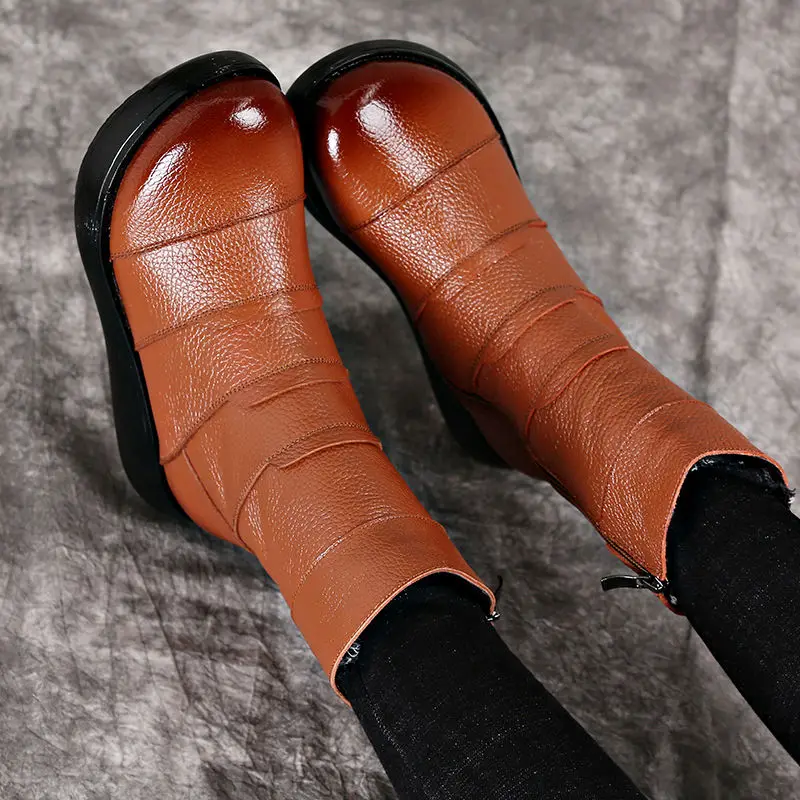 OUKAHUIзимние винтажные короткие ботильоны из натуральной кожи смеш...