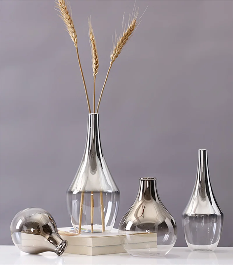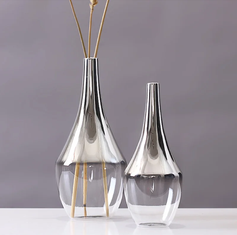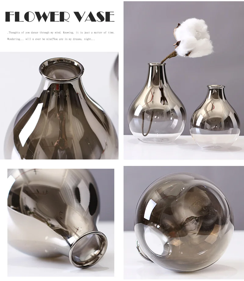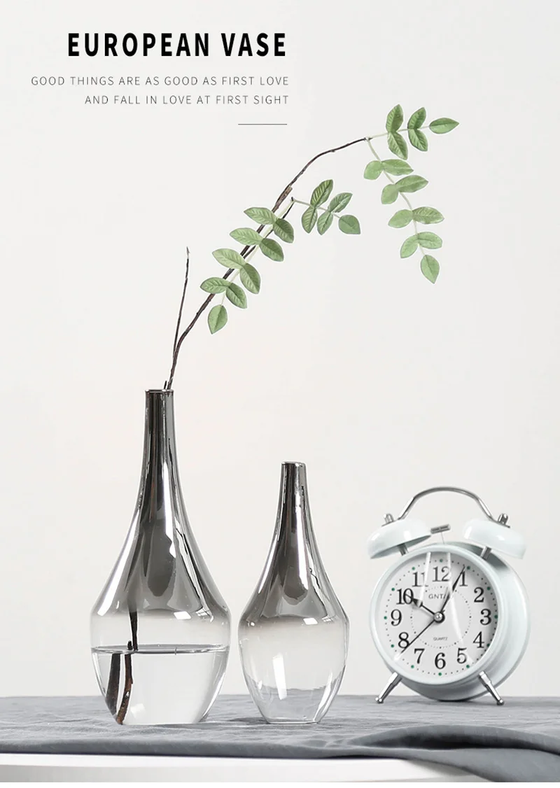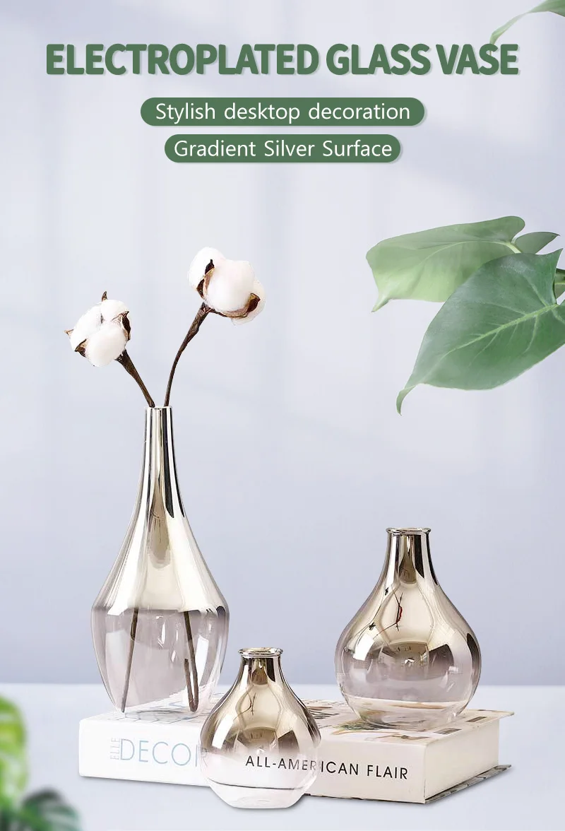Стеклянная ваза в скандинавском стиле, серебряный градиент, сушеные цветы в скандинавском стиле, ваза для украшения интерьера, декоративные растения горшки для мебели, рождественский подарок