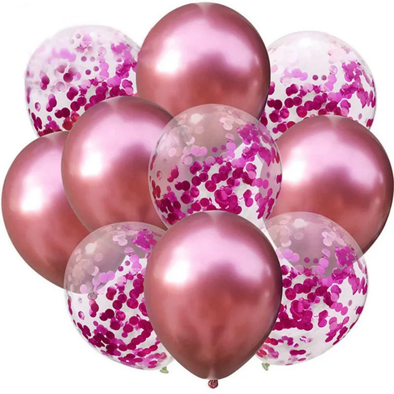 Воздушные шары с конфетти, 12 дюймов, 10 шт., латексные воздушные шары с металлическим отливом