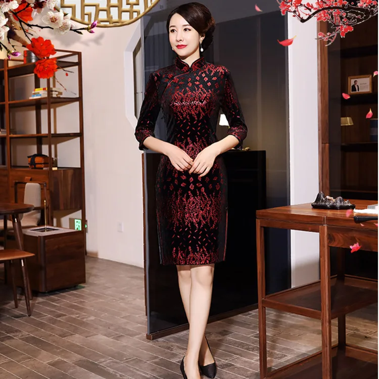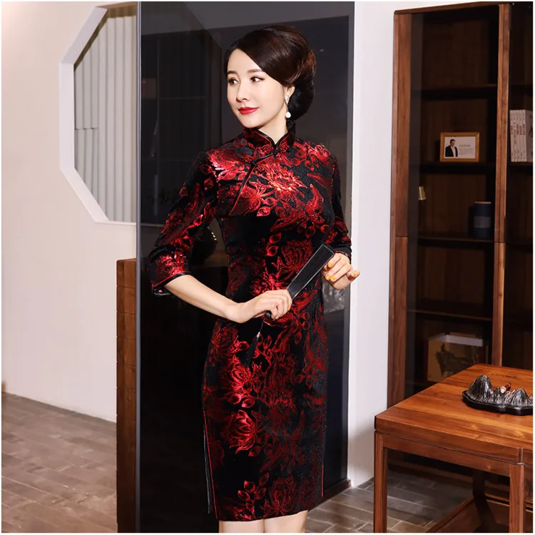 Бархатные Длинные платья Sheng Coco, вечернее Ципао, традиционная к...