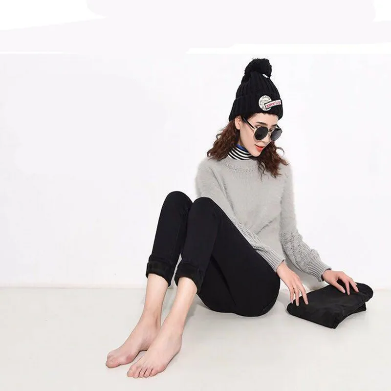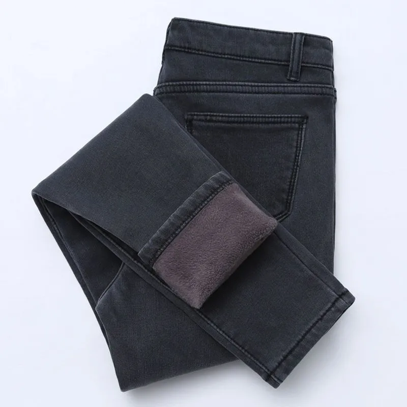 Новинка 2022, зимние плотные флисовые джинсы для женщин, эластичные теплые обтягивающие джинсовые бархатные джинсы-карандаш, эластичные женские джинсовые брюки