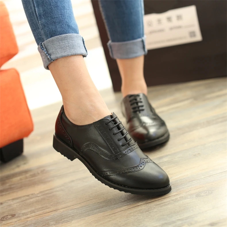 Туфли-оксфорды женские из натуральной кожи, плоская подошва, винтажные лоферы, повседневная обувь на шнуровке, броги, весна-лето 2022