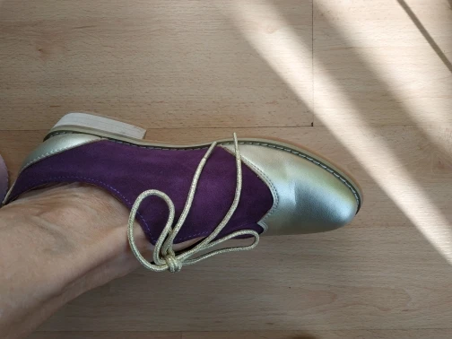 Получила туфли через 4 недели после заказа. Туфли из кожи, очень удобные и летом нигде не будут жать, даже при жаре, но элегантности от такой цены трудно ожидать. На размер 37 взяла 7. Упаковка аккуратная, нигде ничего не помялось.