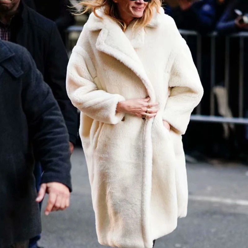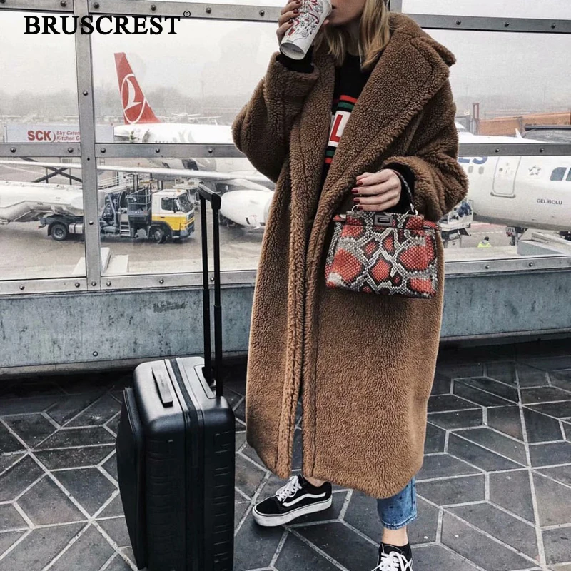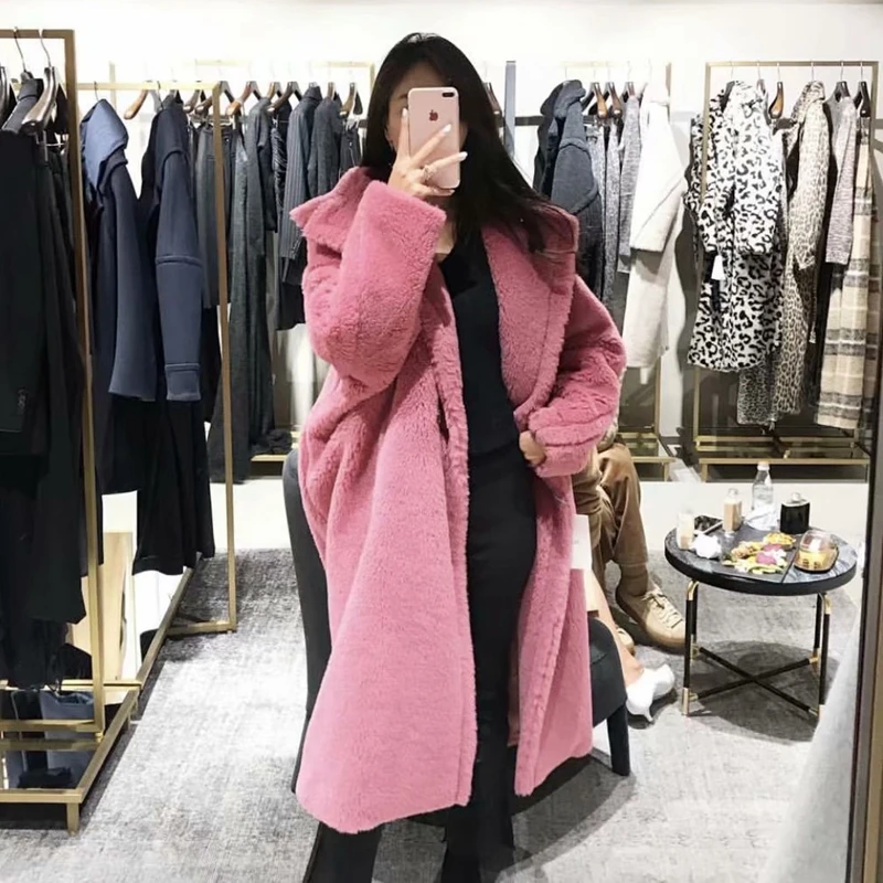 Пальто женское зимнее с искусственным мехом, длинное, оверсайз