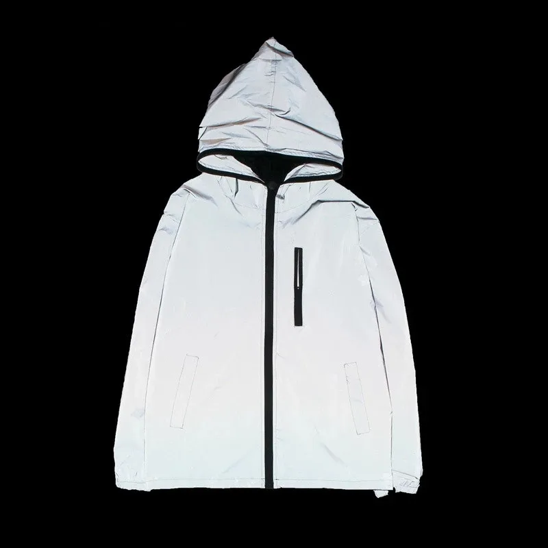 Куртка мужская Светоотражающая, с капюшоном, на молнии, водонепроницаемая