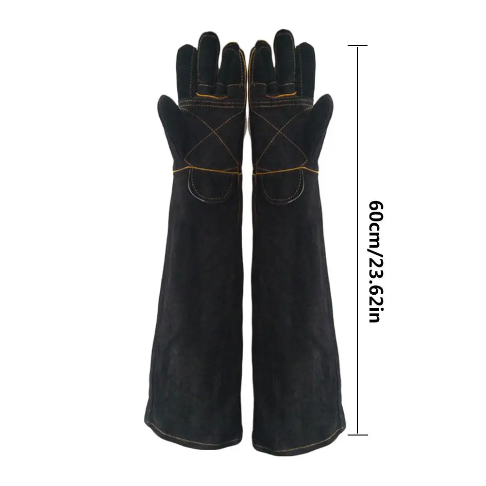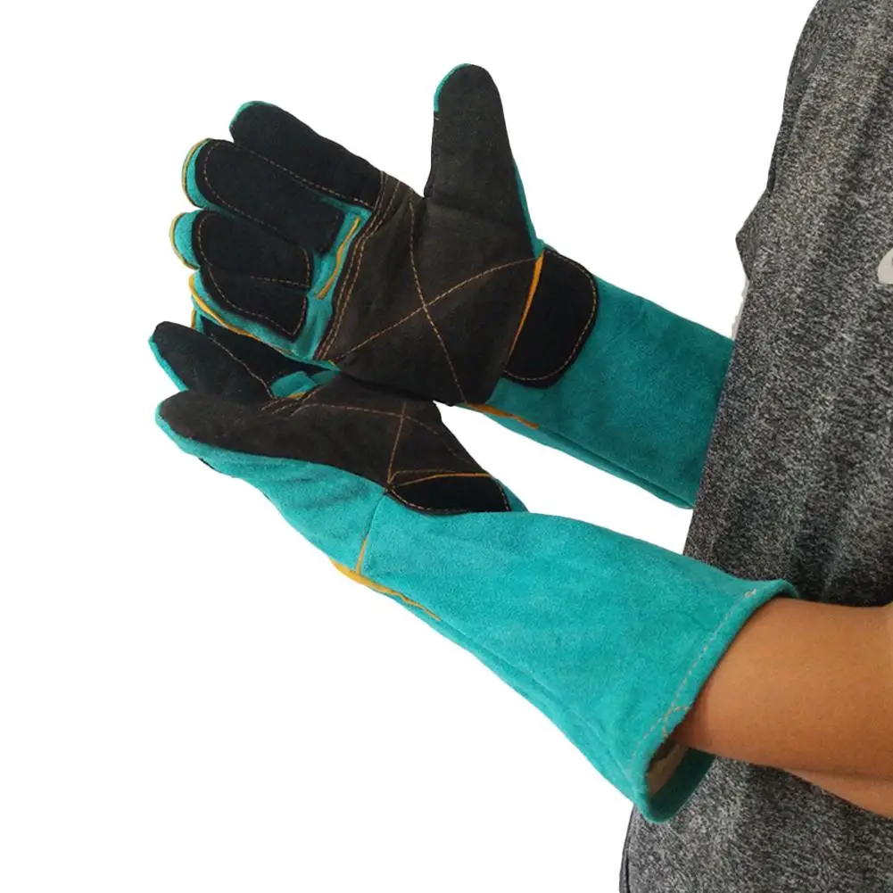 Длинные двухслойные кожаные перчатки для домашних животных, защитные перчатки от укусов для ловли собак, кошек, рептилий, животных