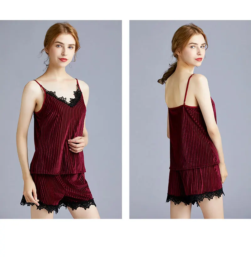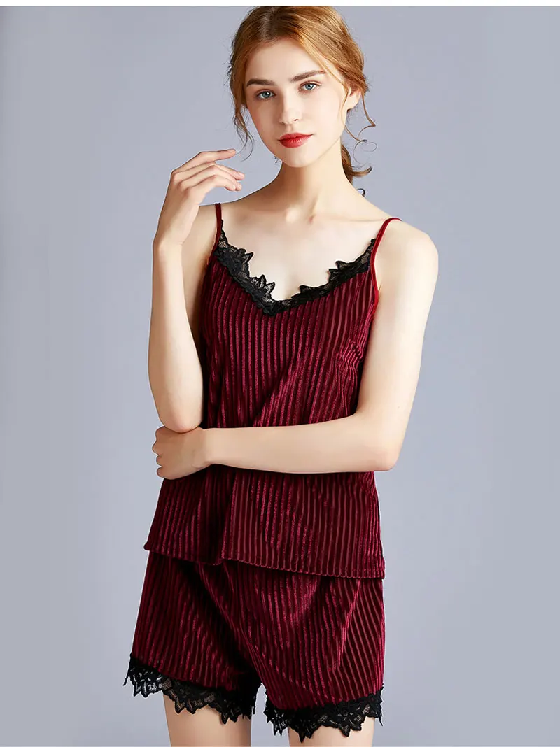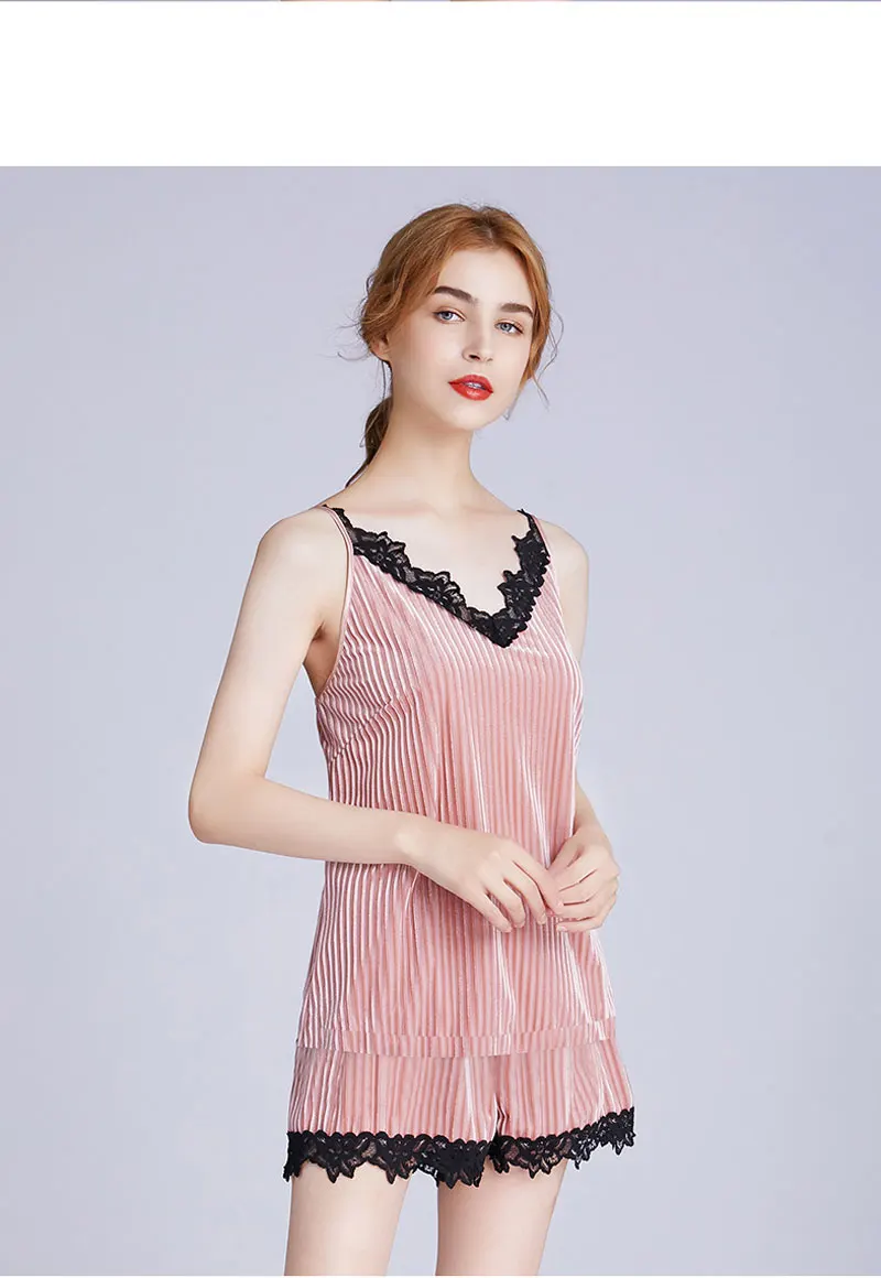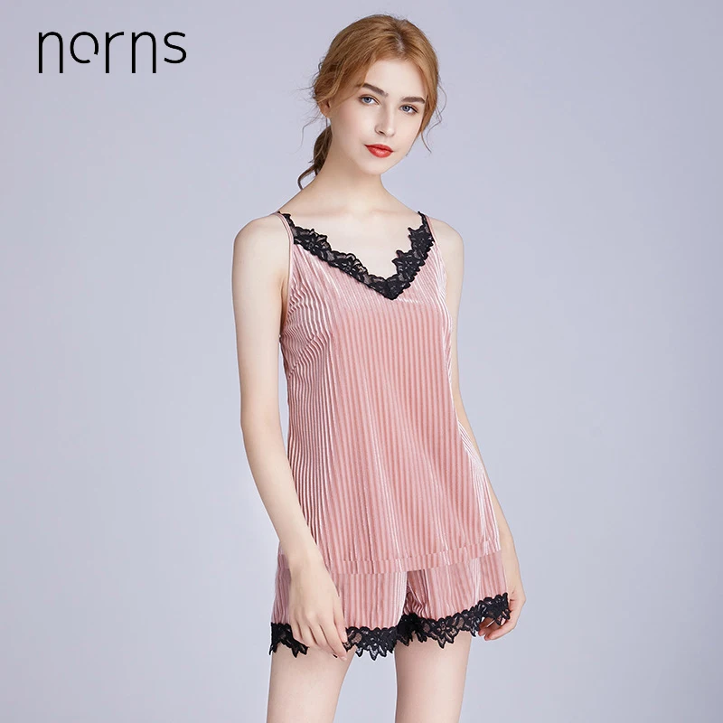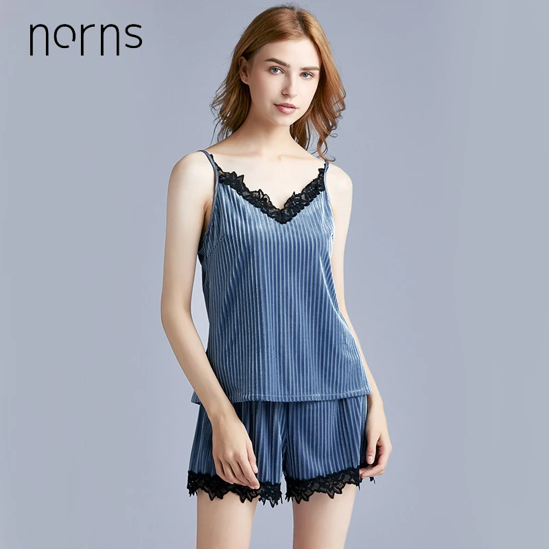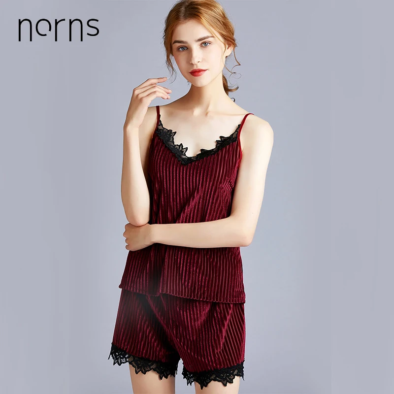 Norns Женская бархатная одежда для сна осенняя и зимняя одежда для сна шорты с бретельками Двухсекционный сексуальный кружевной утепленный домашний сервис