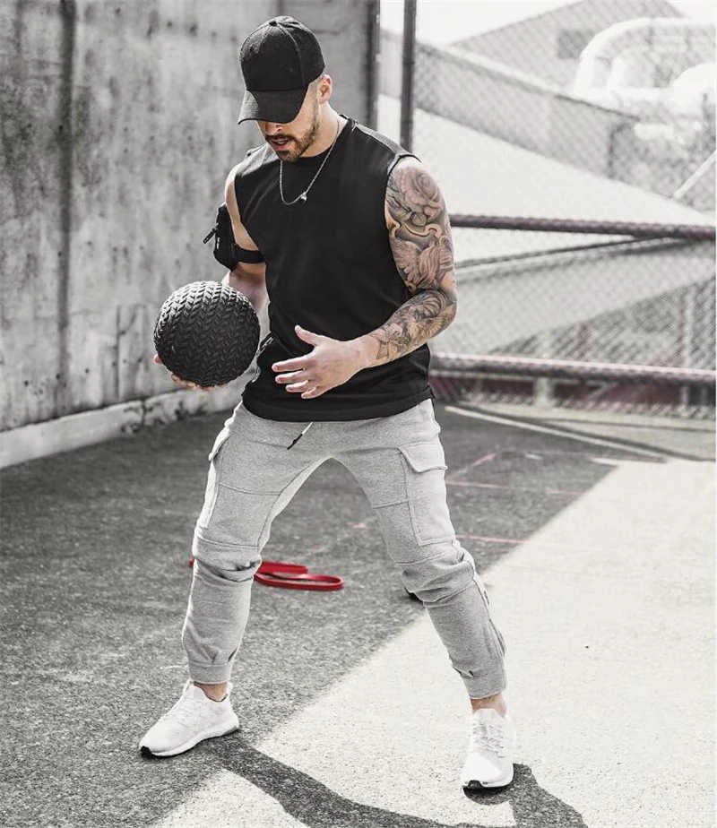 Новая спортивная хлопковая рубашка без рукавов для бодибилдинга, му...