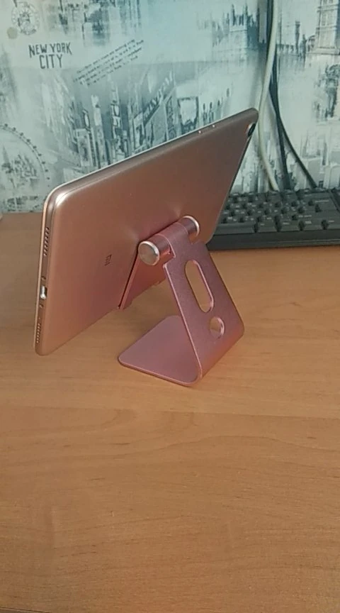 Подставка классная, металлическая. 7 айпад с экраном 10.2 держит отлично и горизонтально и вертикально. Розовый цвет просто супер!