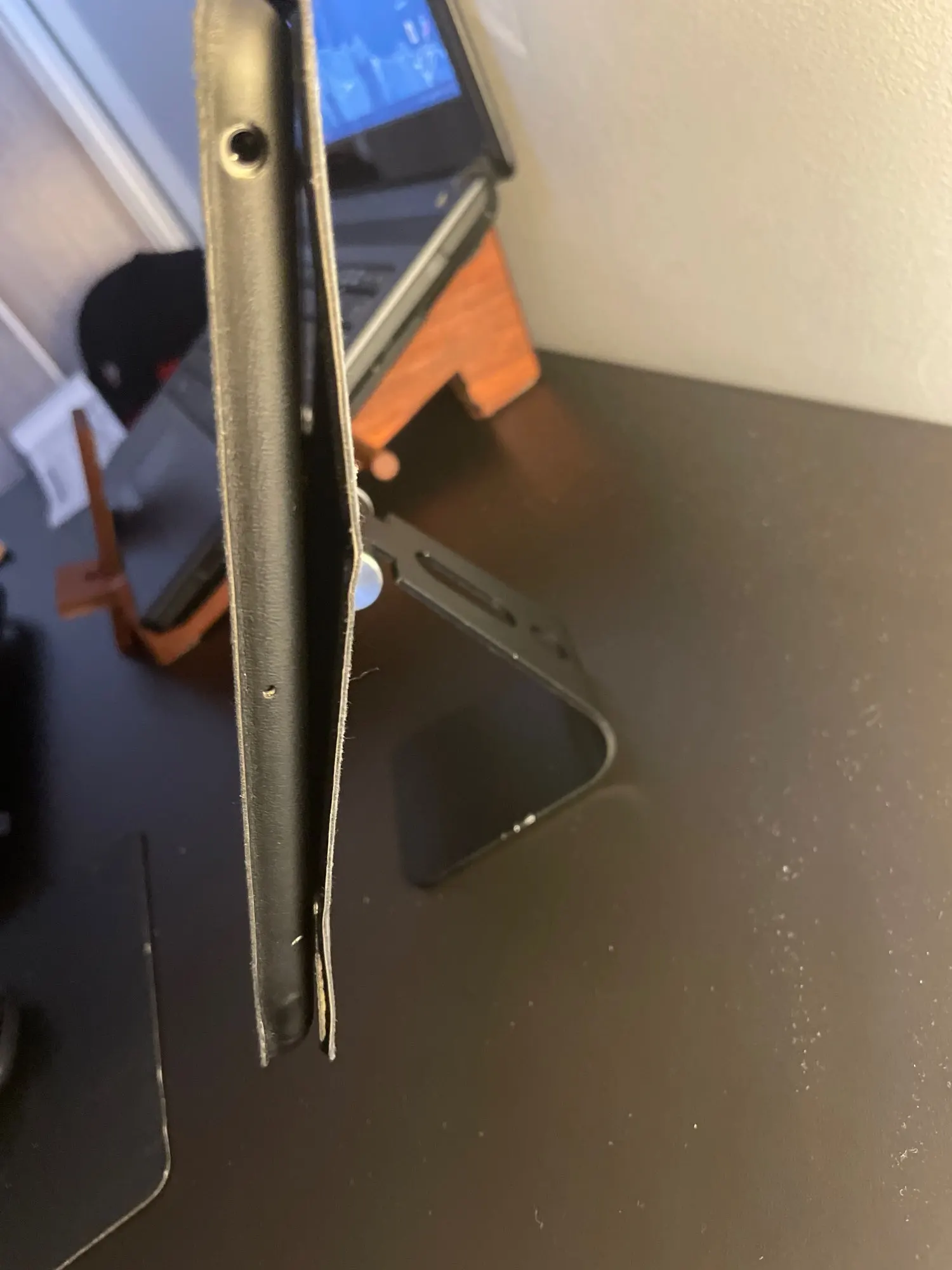 Отличная подставка. Жёсткая фиксация. Смартфон (Xiaomi Mi 9T) в простом силиконовом чехле влез без проблем, сидит отлично. iPad (2019) в чехле тоже влез нормально, но держится только в горизонтальном положении, в вертикальном заваливается. Все резиночки аккуратно приклеены. В некоторых местах по краям есть небольшие сколы, но с таким материалом это ожидаемо.