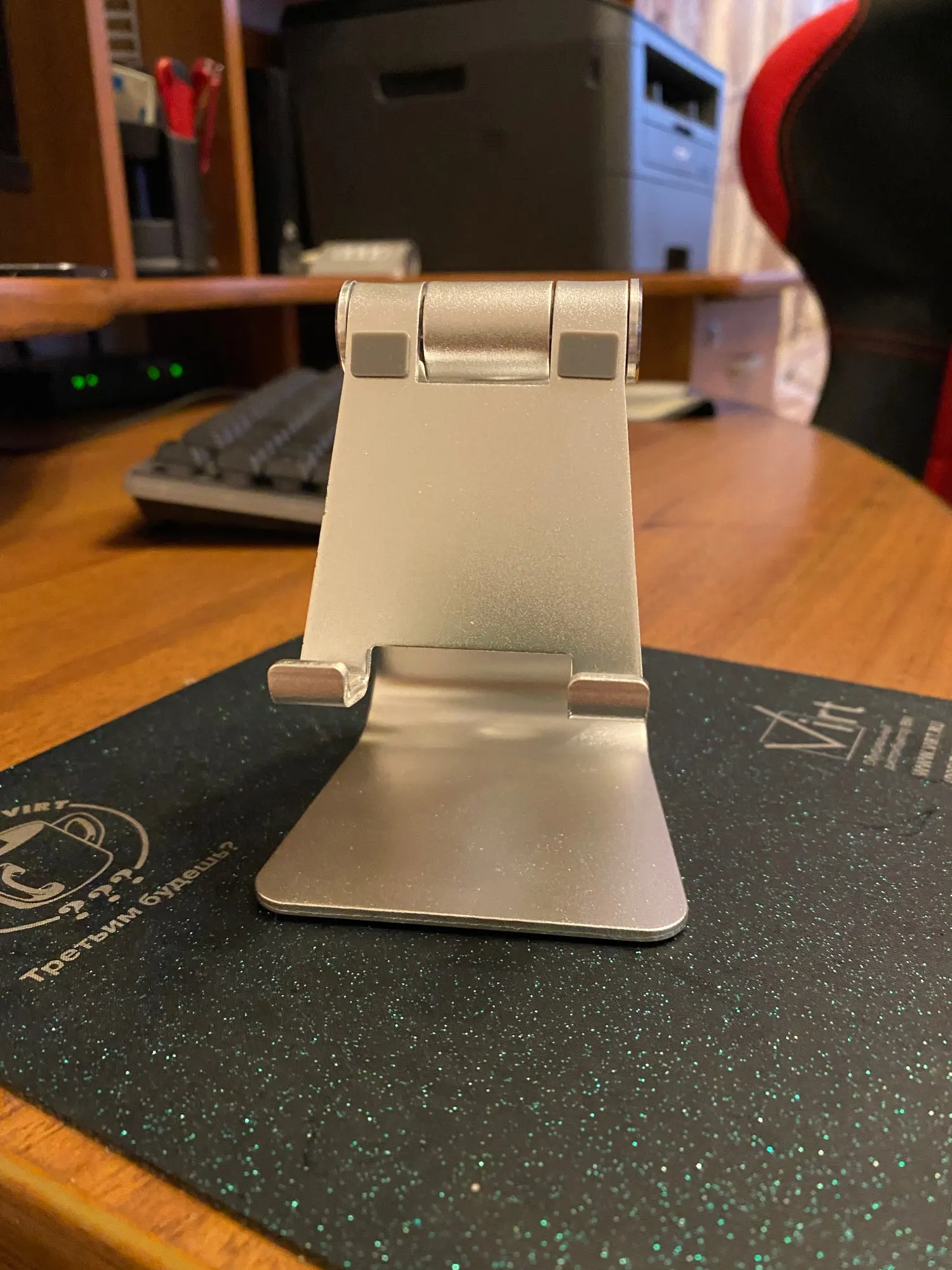 Соответствует описанию, идеальный, металлический, прочный, отлично держит планшет. Не скользит. Отлично. Спасибо.