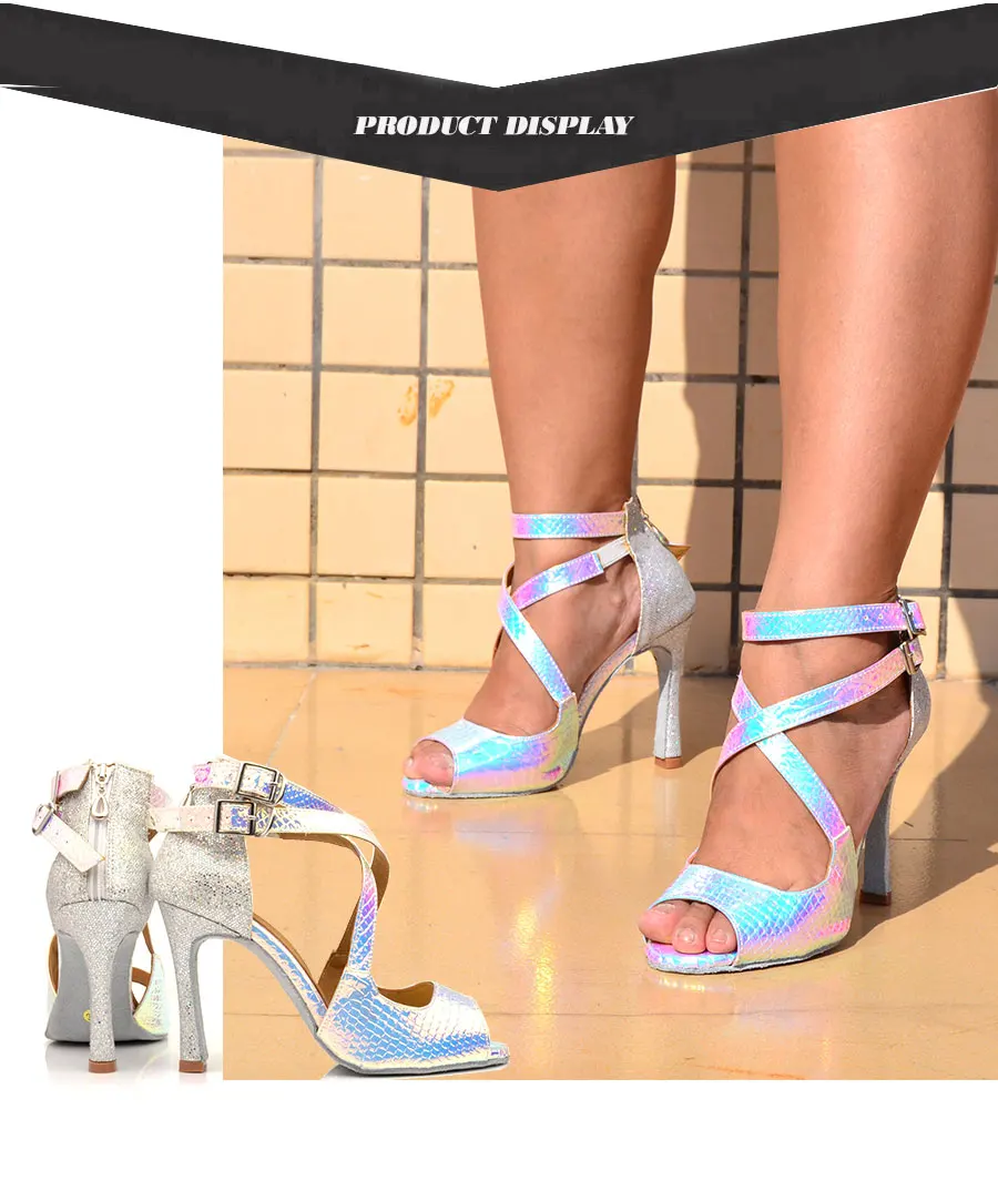 Туфли женские для латинских танцев, хамелеон блестящий, 2020