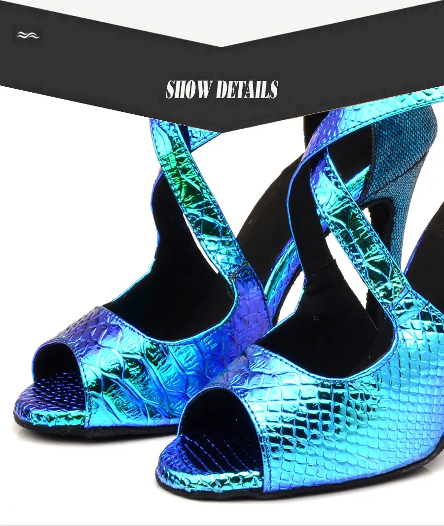 Туфли женские для латинских танцев, синие, с текстурой в африканско...