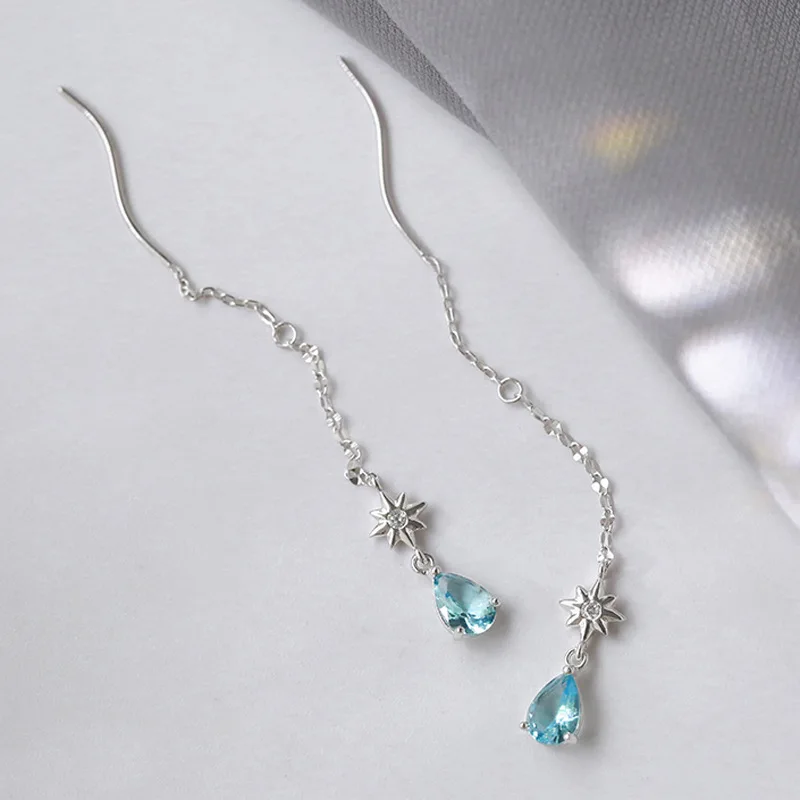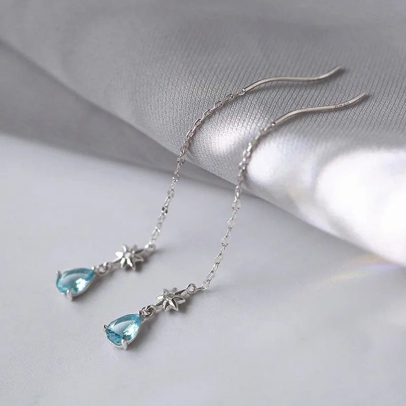 Женские серьги-подвески Todorova, с голубыми цирконами в форме капл...