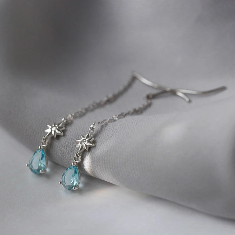 Синий капли воды серьги с дизайном солнце для женщин с украшением в...