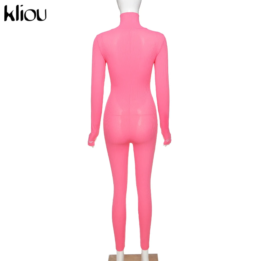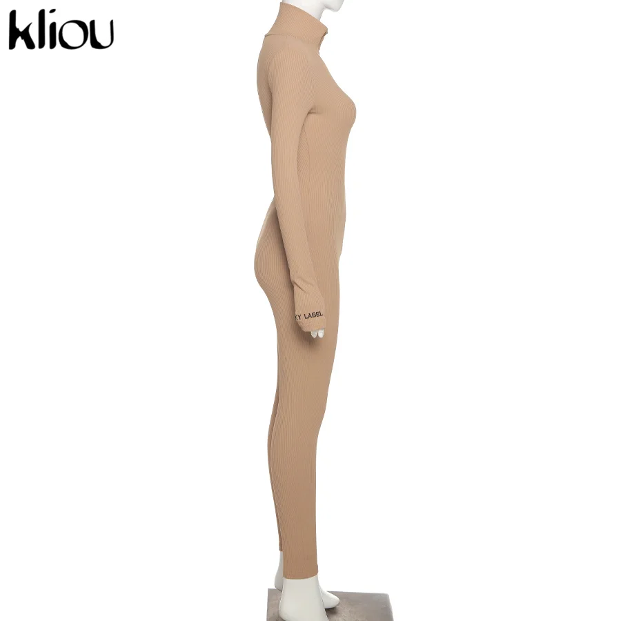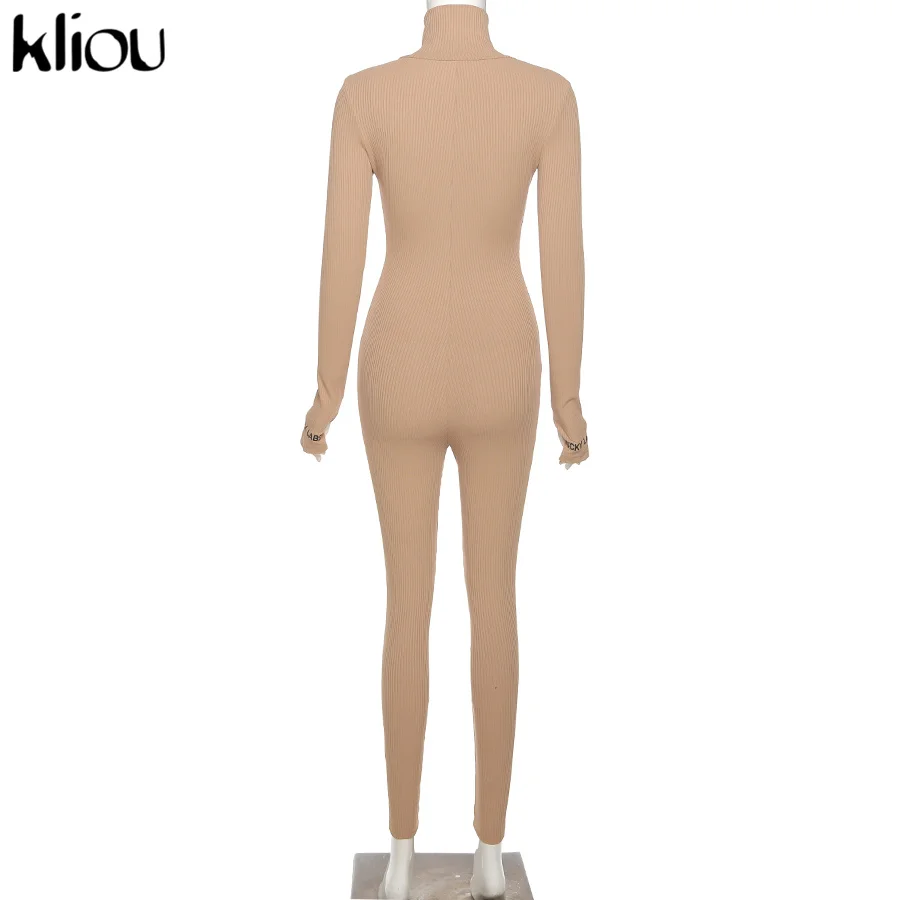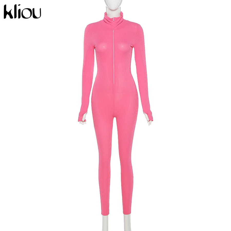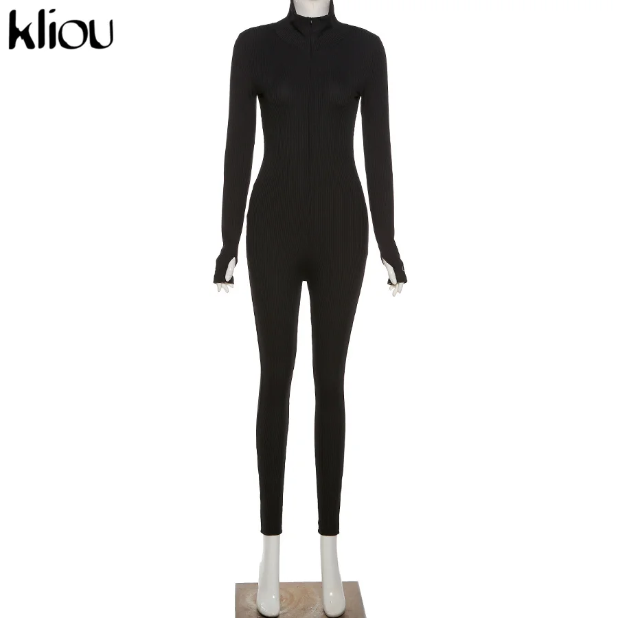 Женский комбинезон на молнии, с высоким воротником и длинным рукавом