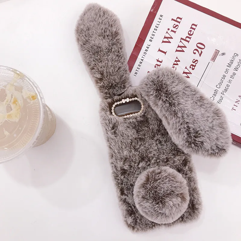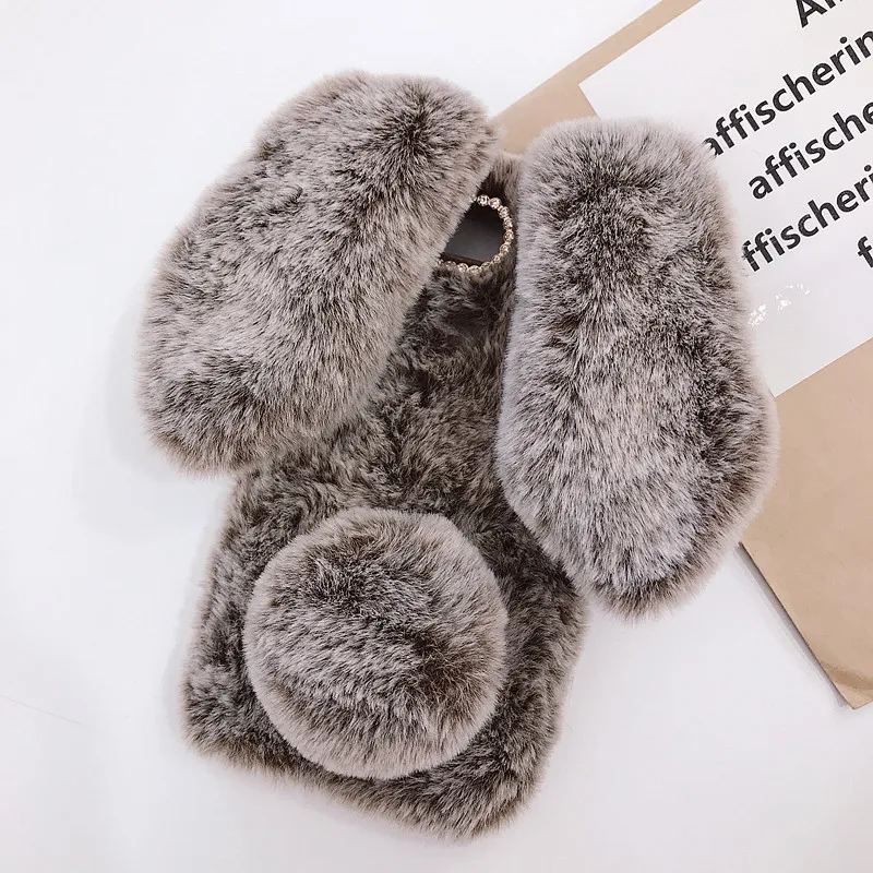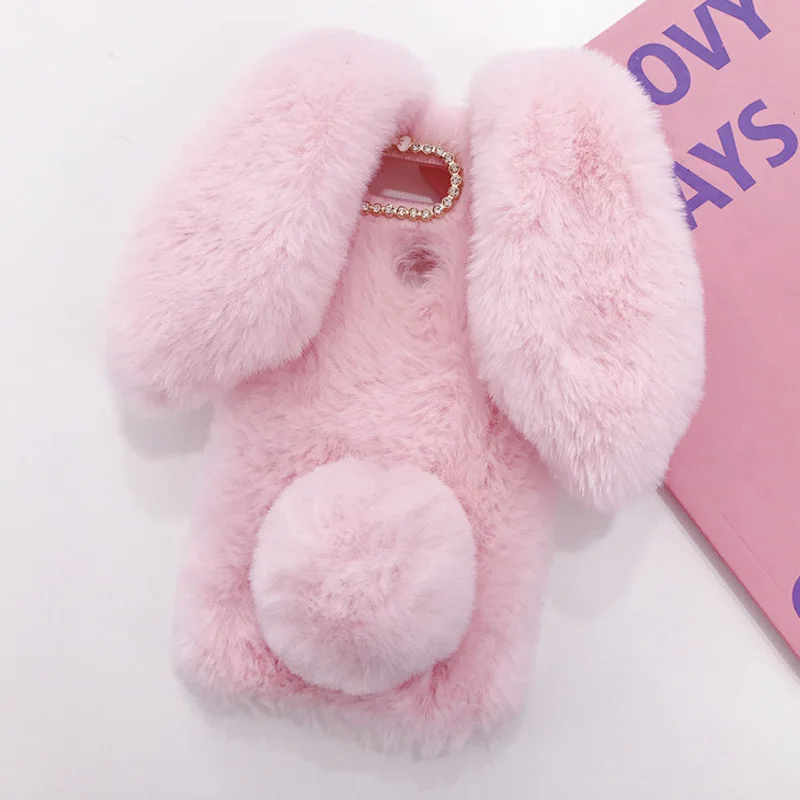 FeactureTPU Bag Cover Cute Cases Rabbit Bunny Warm Furry Rabbit Fur TPU Phone