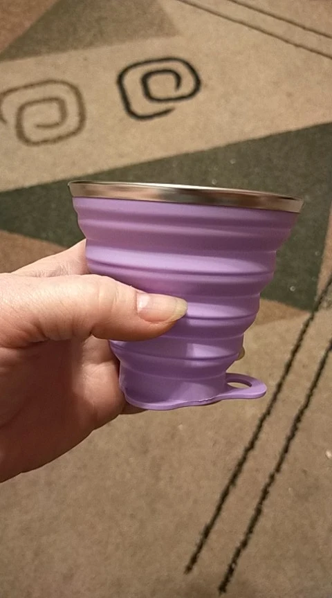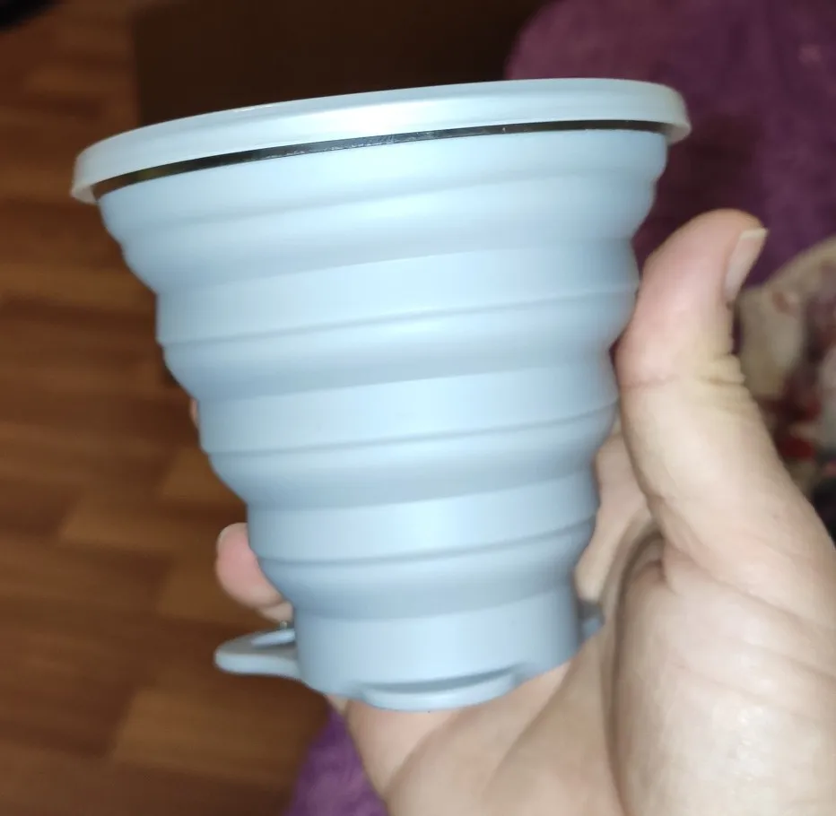 Отличный стаканчик, довольно объемный и в то же время компактный в сложенном виде. Складывается хорошо и удобно, уверенно держит форму в разложенном виде. Отправили оперативно, прибыл за пару недель в Нижегородскую область.