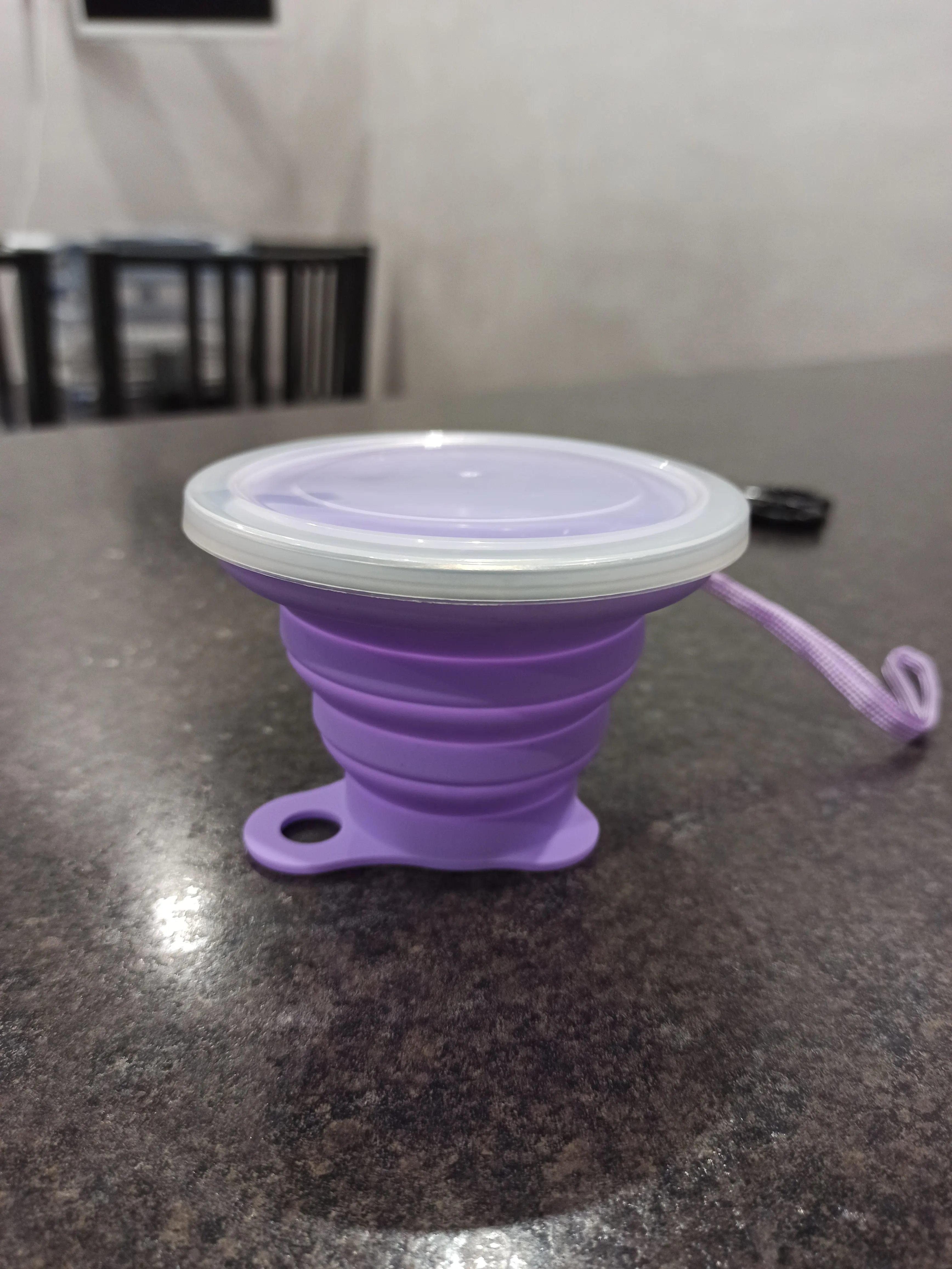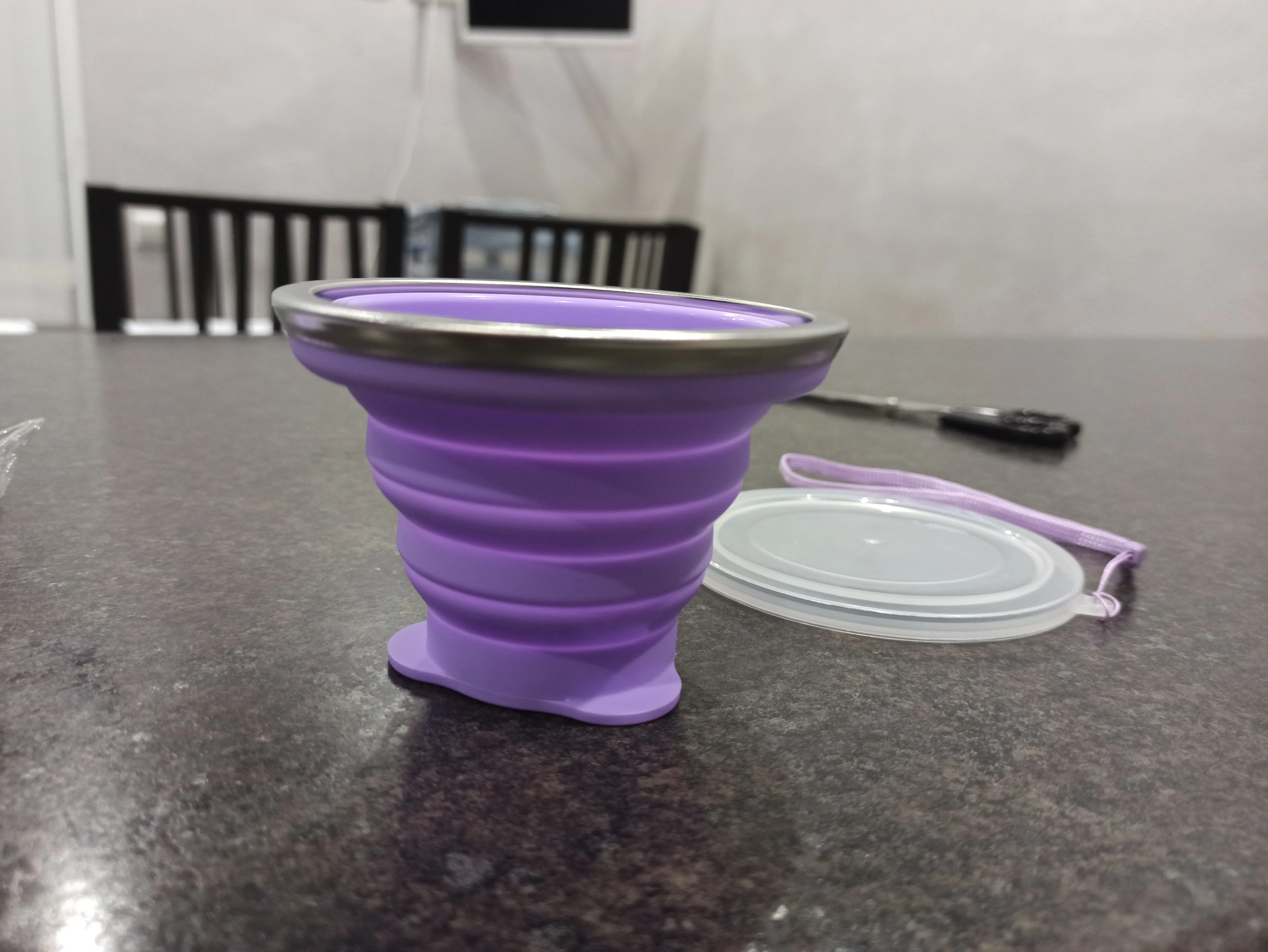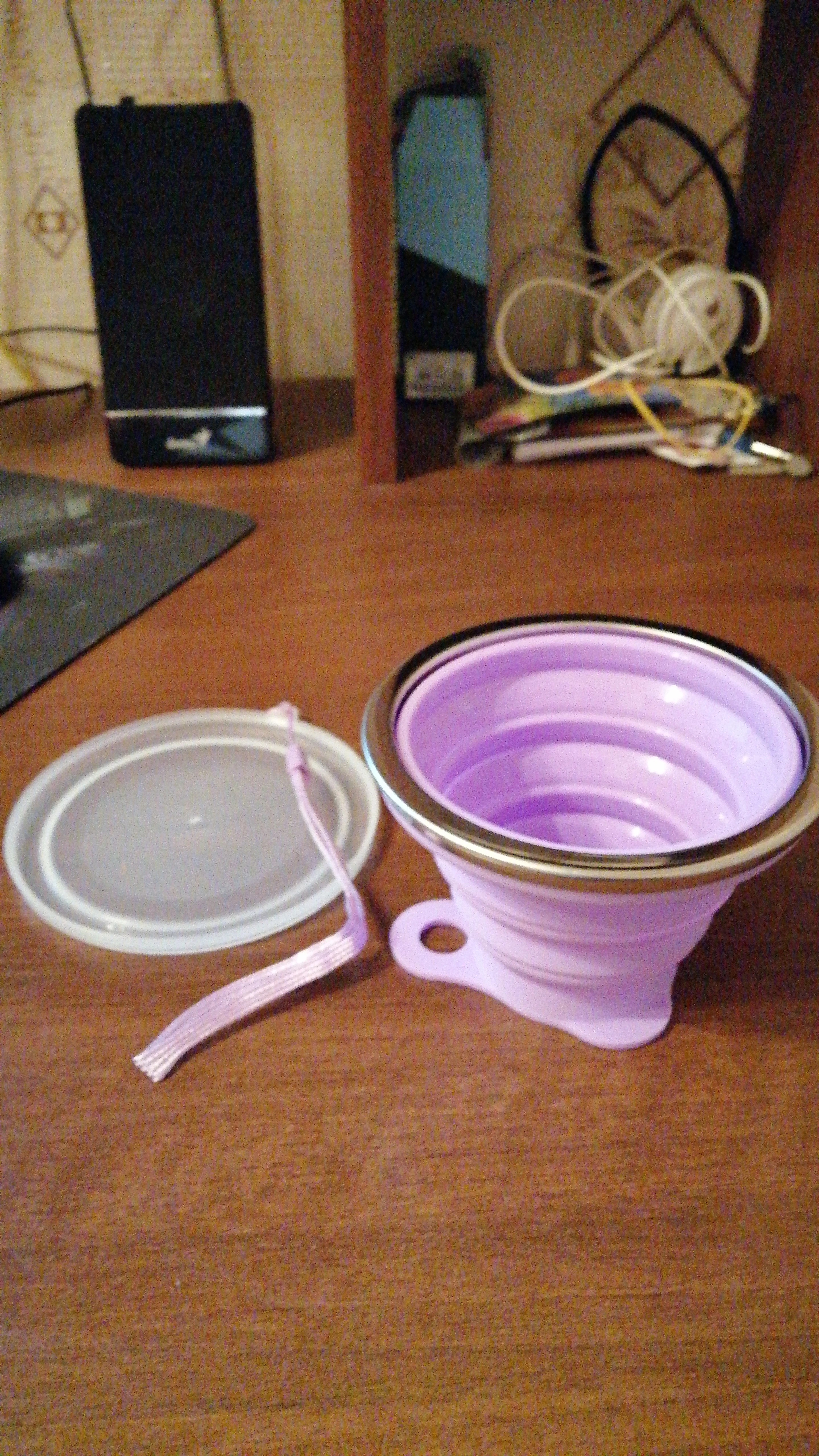 Чашка хорошего качества, запаха от силикона нет, занимает мало места, просто раскладывается. Товар - то, что надо.