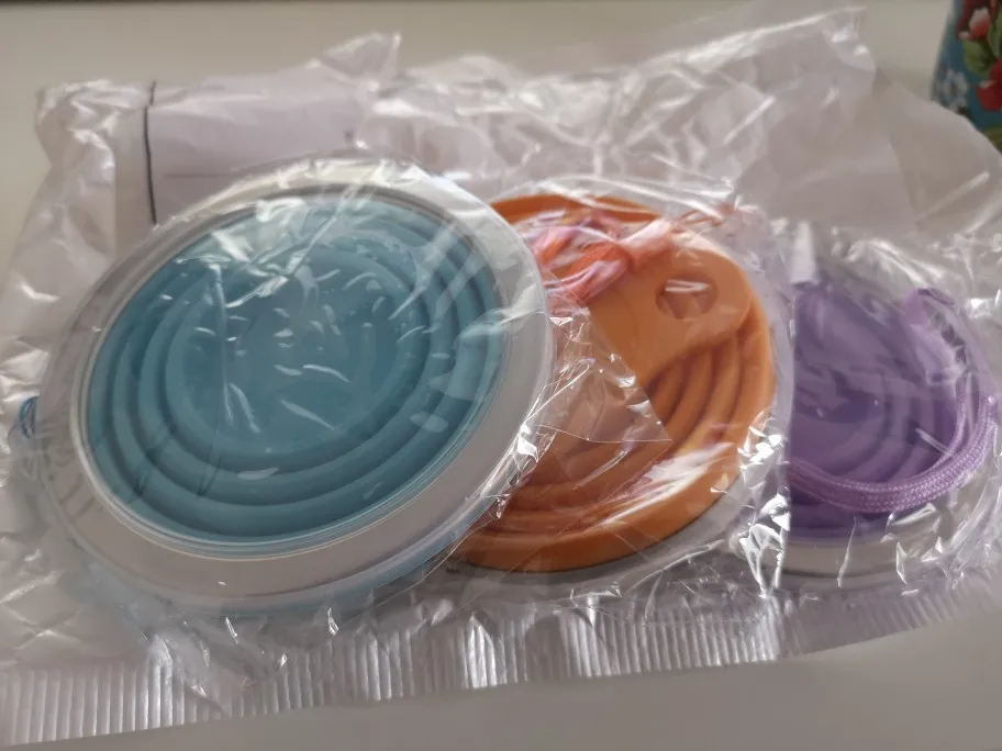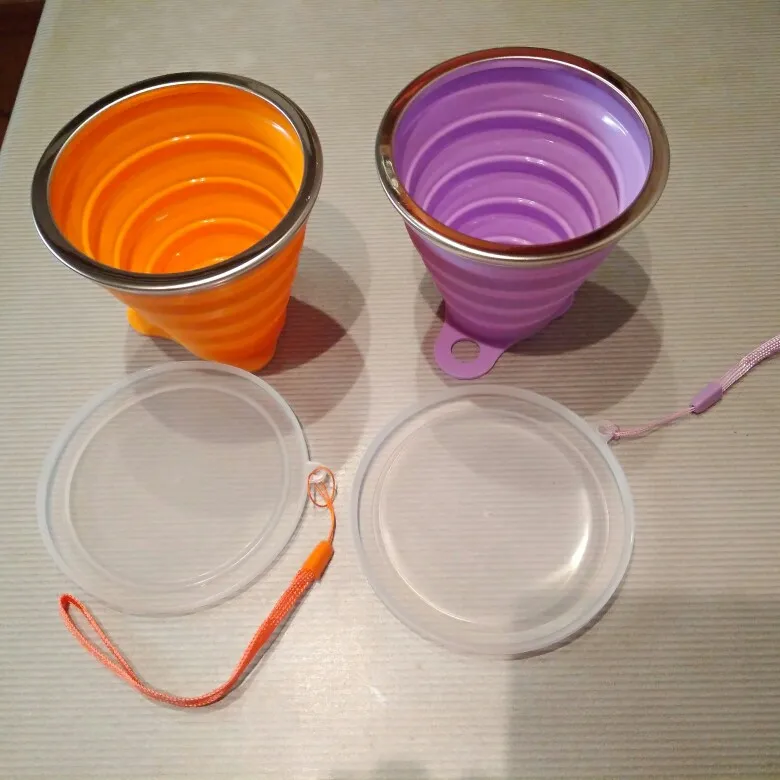 Стаканы пришли быстро. Качество отличное. Налила кипяток, постороннего запаха нет. Рекомендую к использованию. Крышка крепится к стакану, что позволяет в сложенном виде закрепить его на рюкзак.