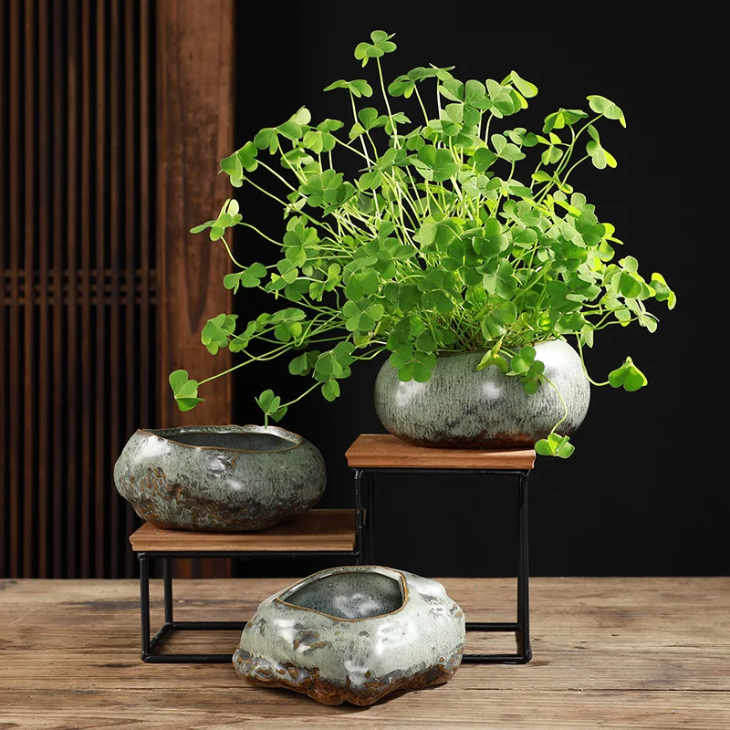 Новый китайский Ретро-художественный цветок, настольный дисплей, медный зеленый керамический мясистый цветочный горшок, культура воды, медные деньги, трава